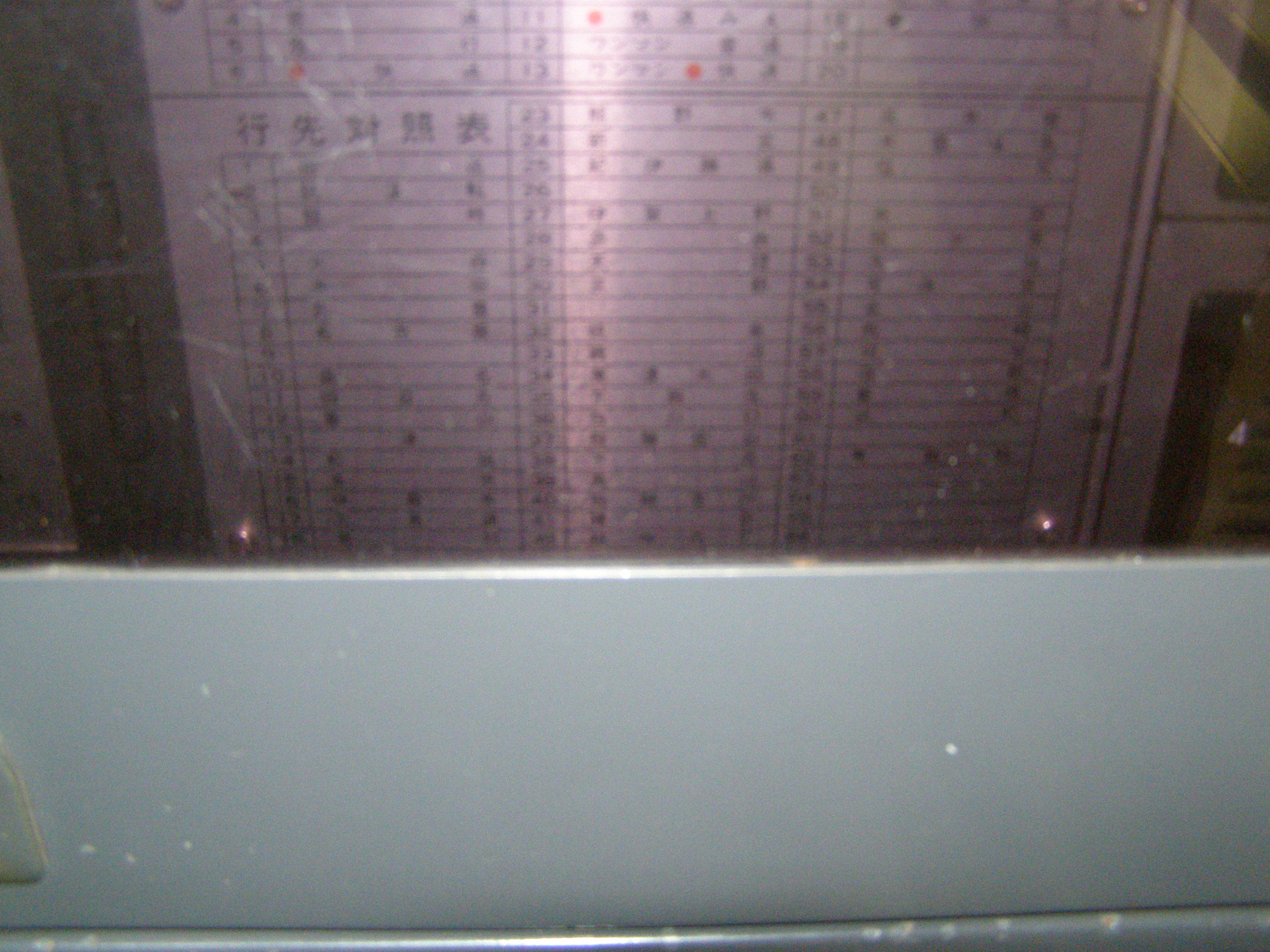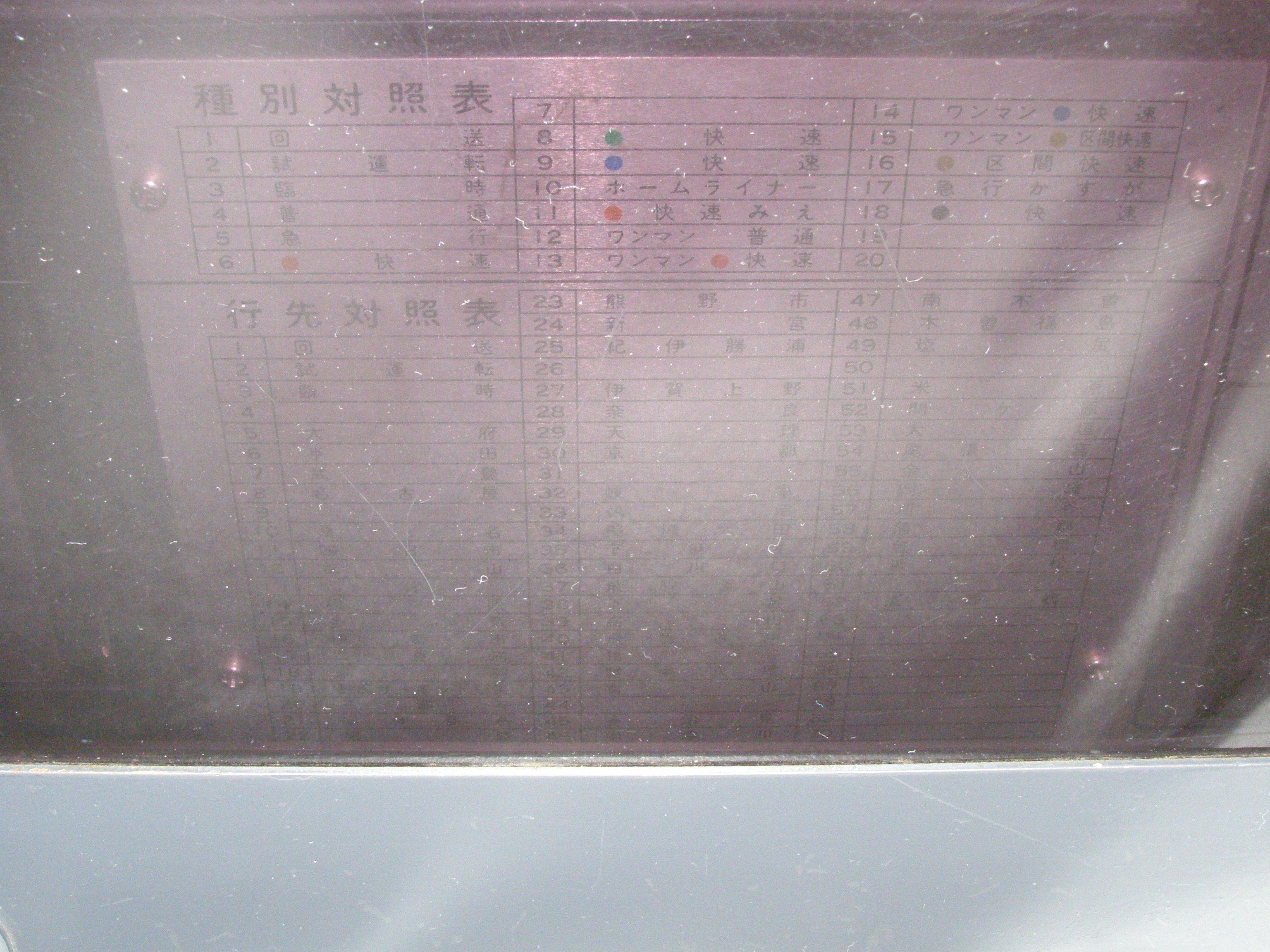 JR東海のキハ75系は、モニタ制御でない0代のみ対照表が設置。位置は213系同様設定機の蓋が難物。200代は対照表はありません。