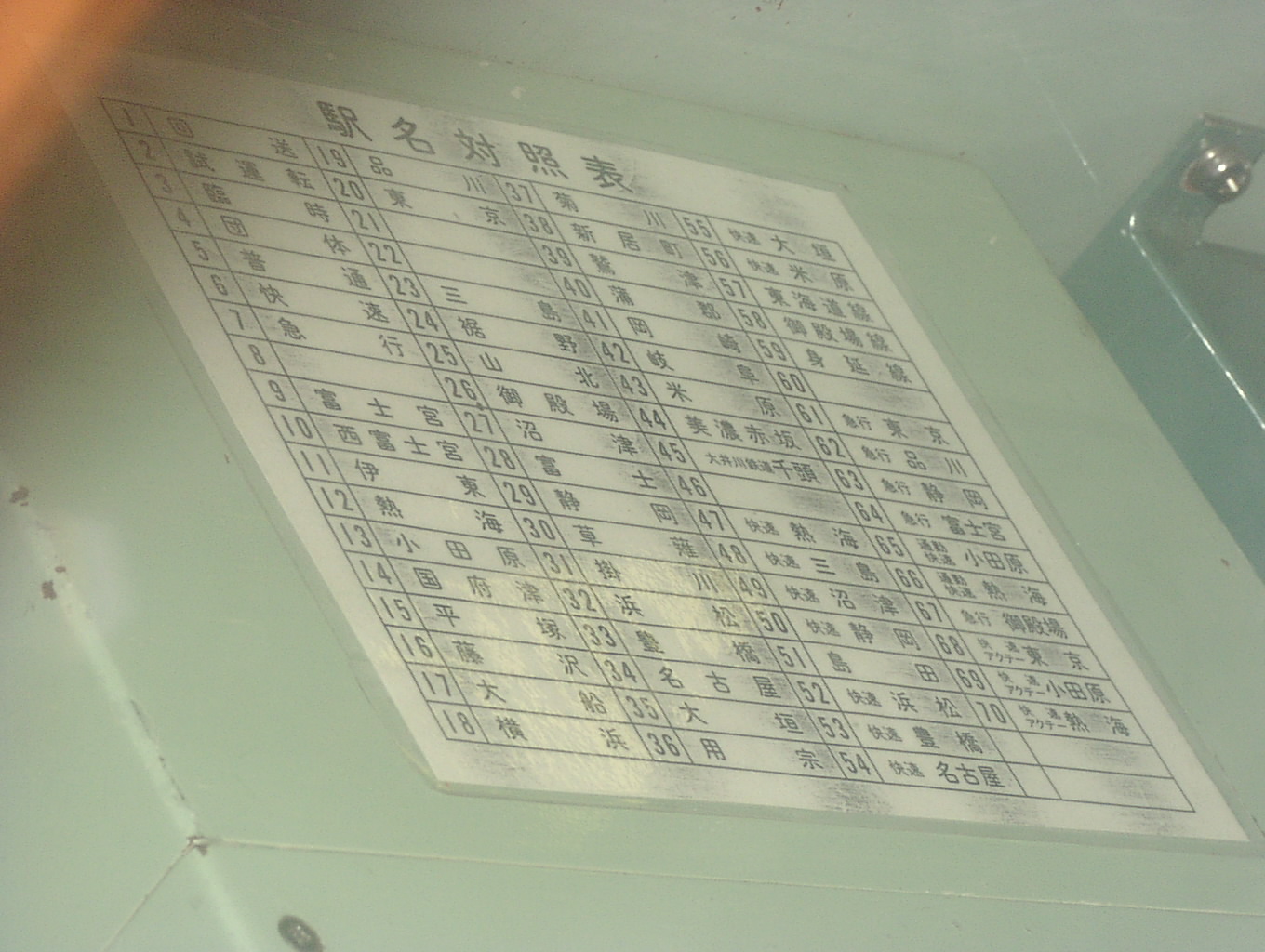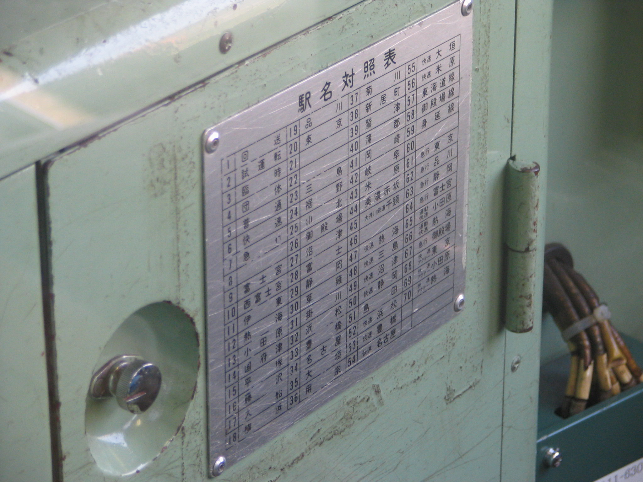 今回は東京駅折り返しで、列番設定機に貼ってあった物を撮影。ステンレスプレートか、 シールを単にコピーしただけの代物で、撮影角度はかなり苦しいです。