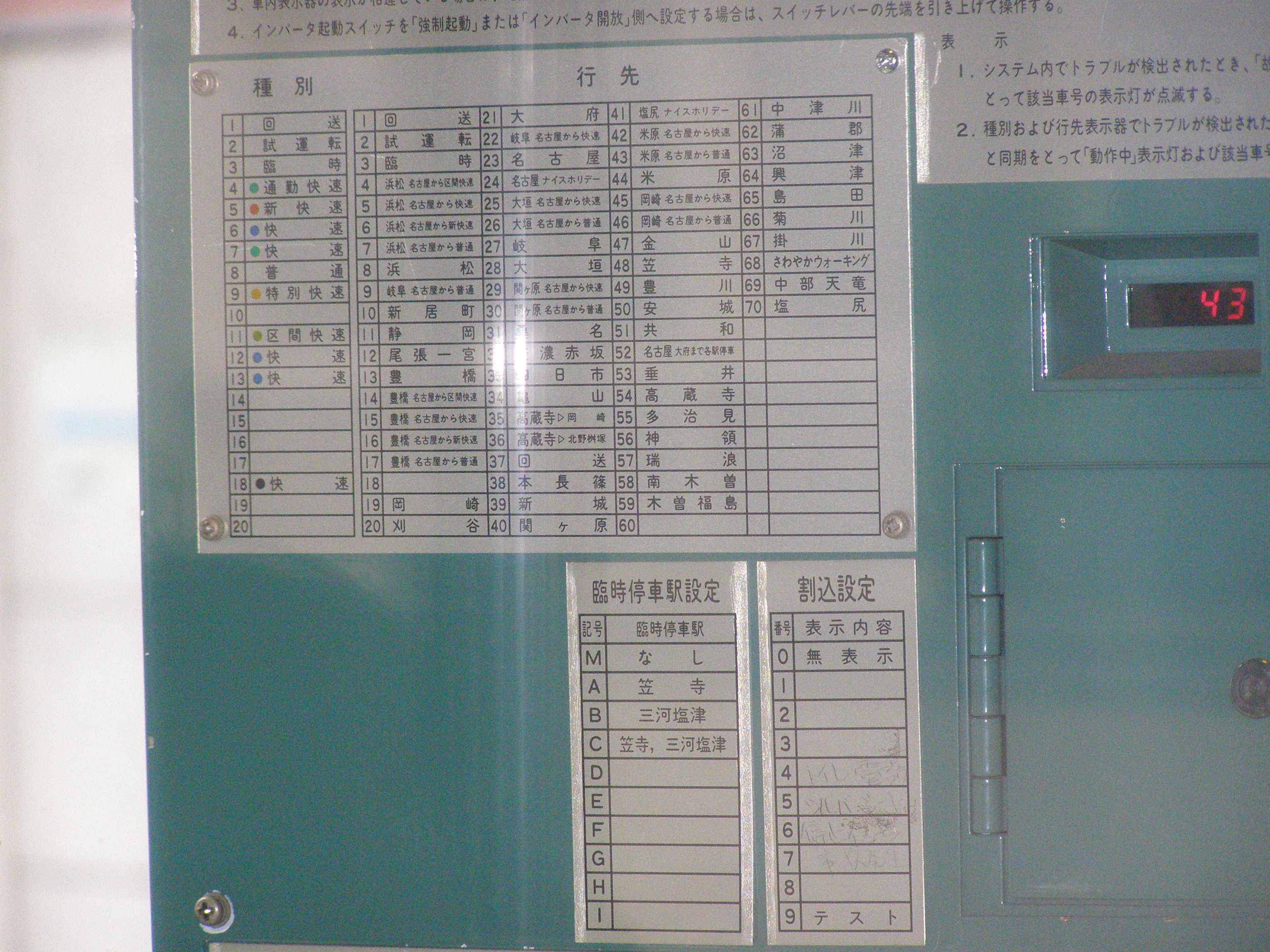 JR東海の311系は、助士側にある設定機ボックスの中。連結状態でないと撮影は無理でしょう。 同じ幕を採用する211系0代はJR東日本の211系と同じ位置に。