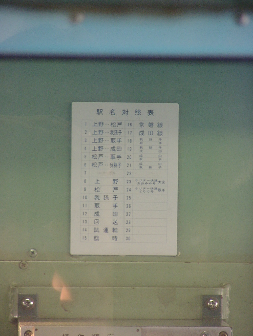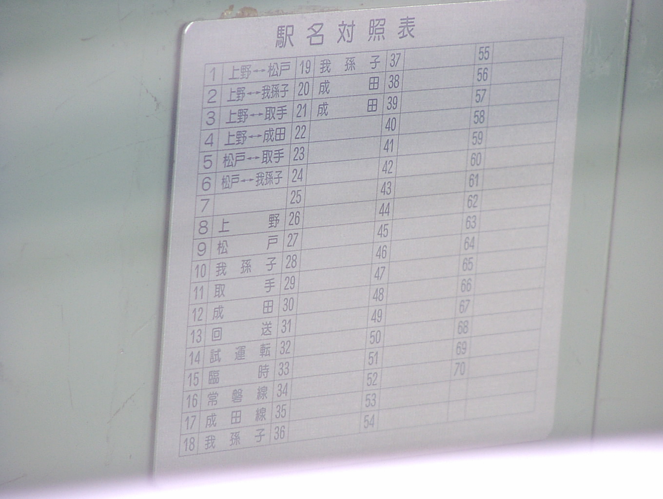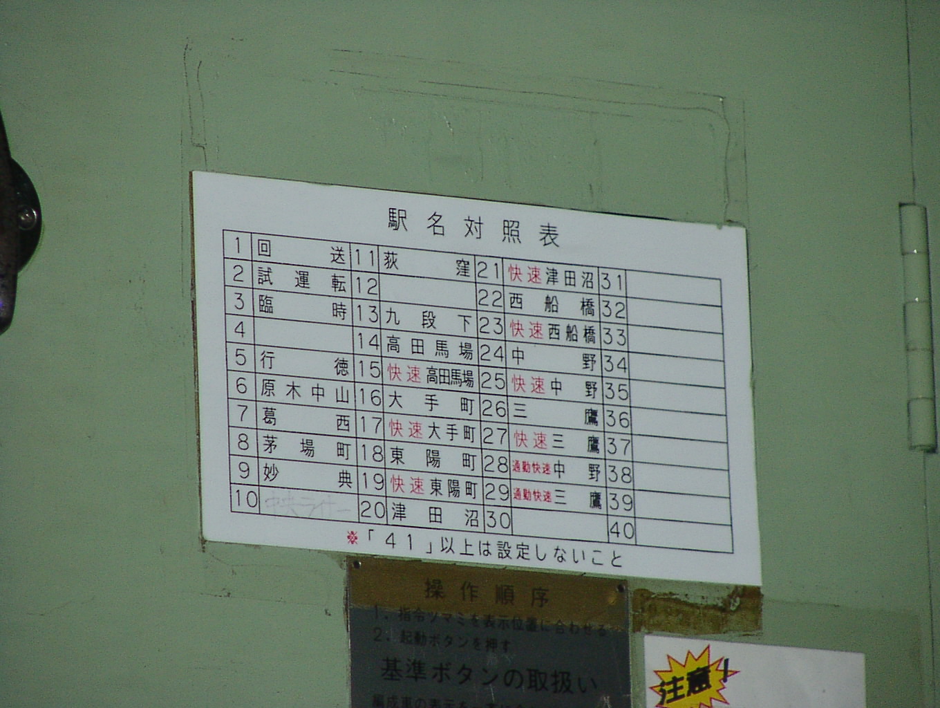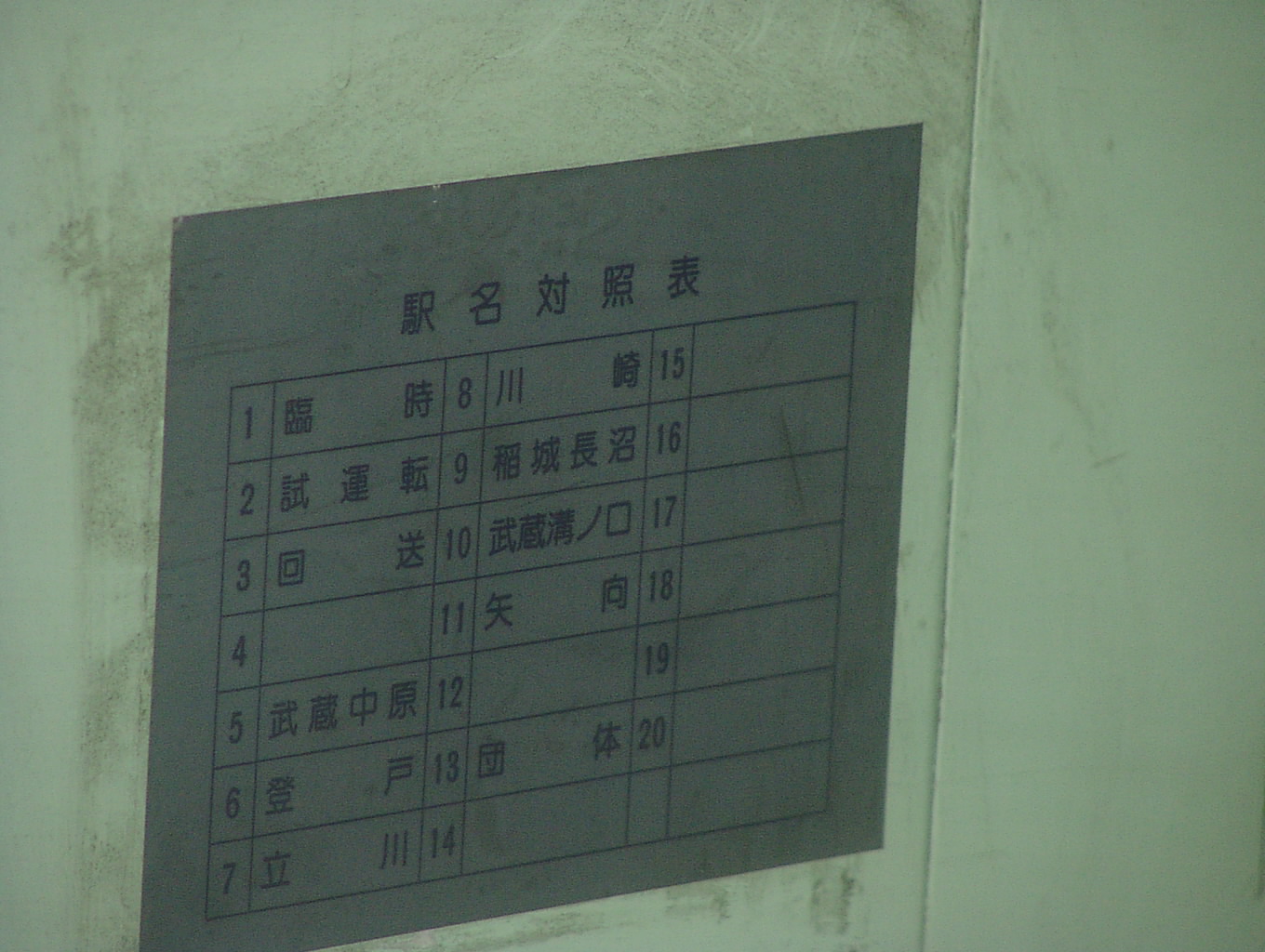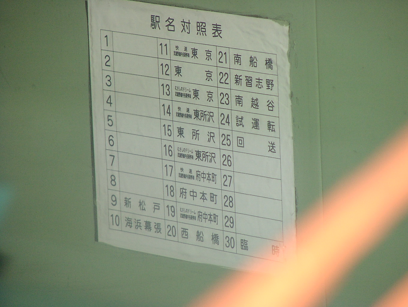 撮影当時、奥多摩行の特別列車が運転されていましたが、運転機会が多いことが前提だったのか、特定編成の幕だけ加刷した特別バージョンが用意されました。 これはその対照表なんですが、、、見にくくてスミマセン。