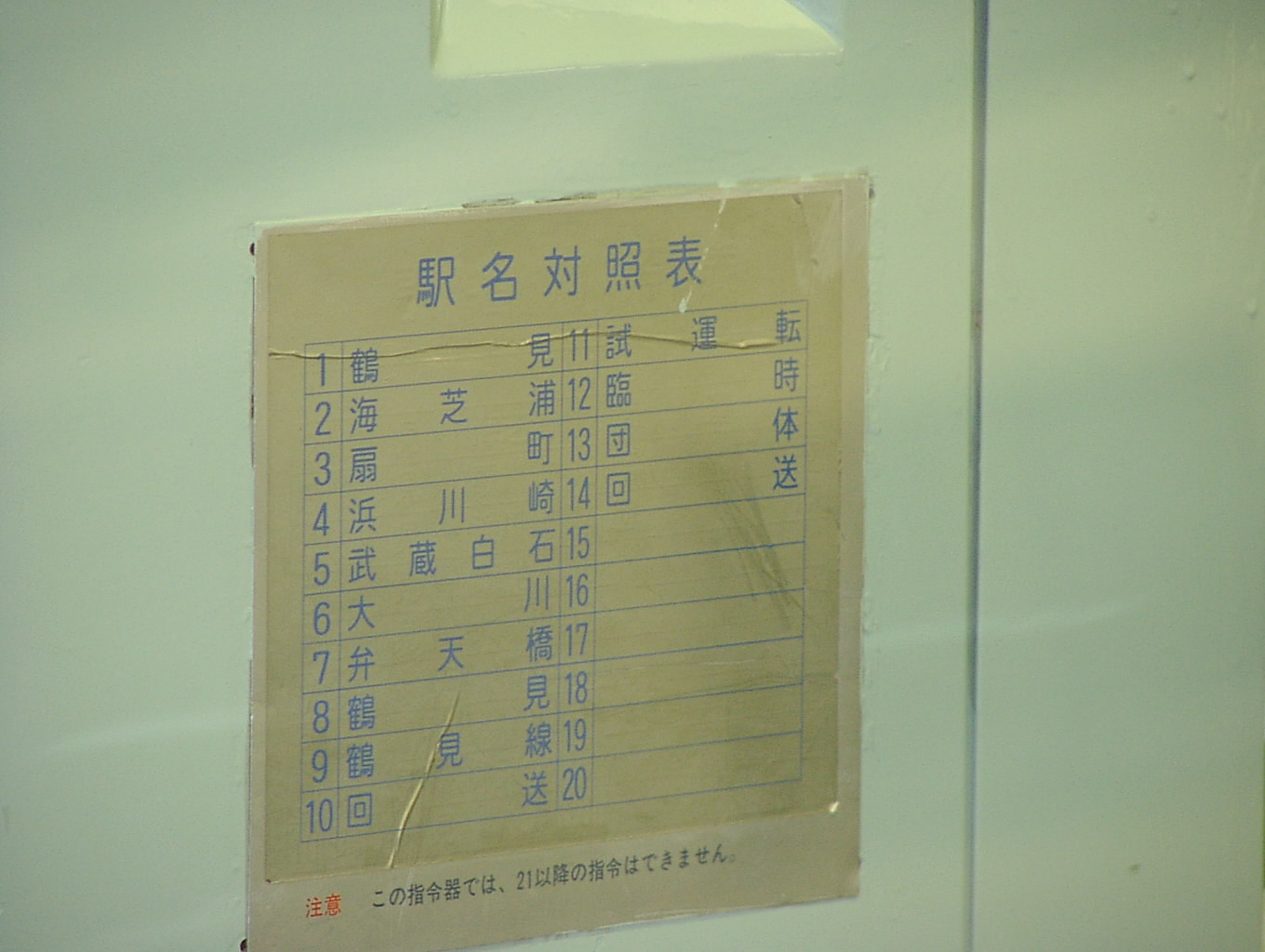 JR東日本の103系は、乗務員室背面中央部にある設定機付近に貼ってありました。既に形式消滅済。