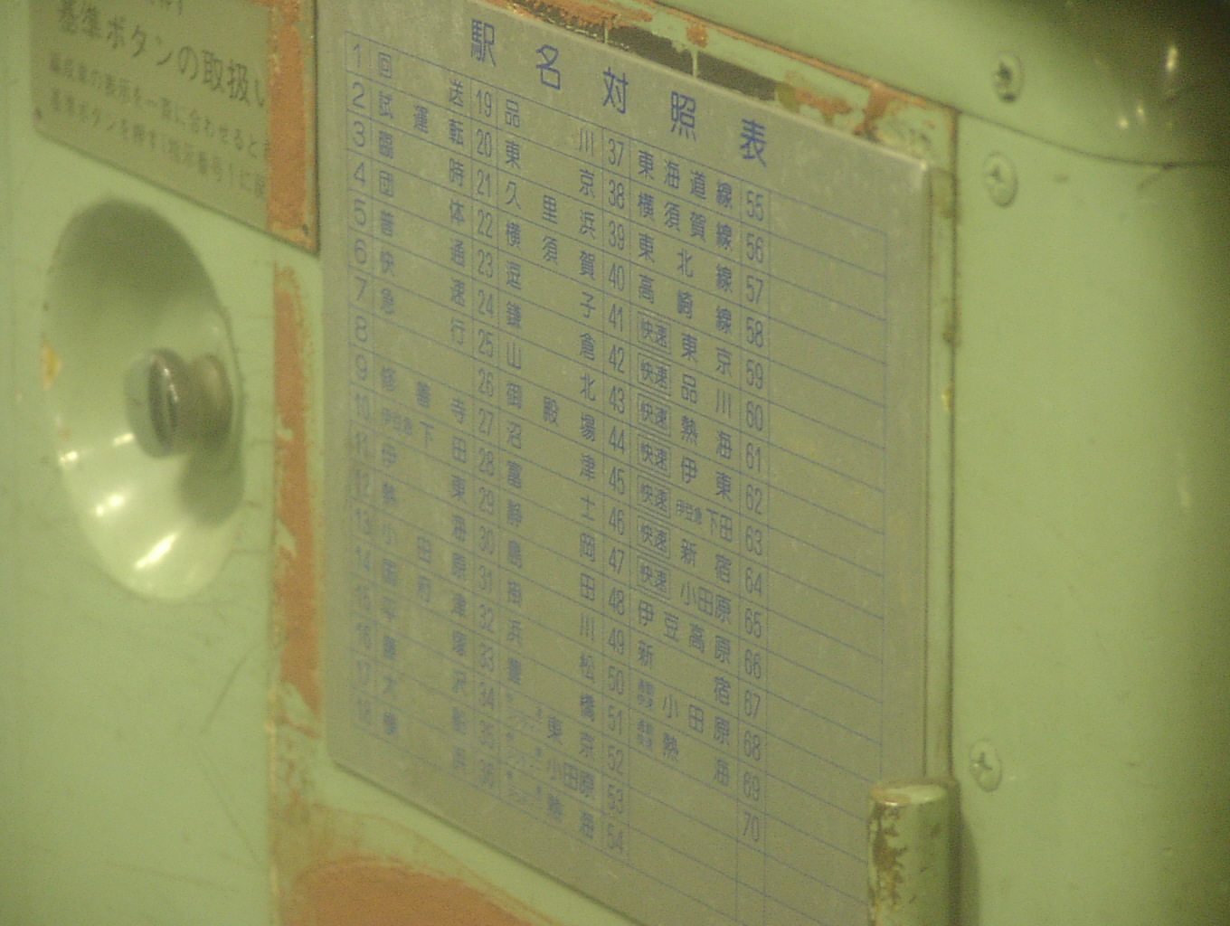 JR東日本の113系は、いずれも運転台背面のダイヤル式スイッチ付近に 対照表が設置されています。車両によって貼付位置に若干差異がありました。
