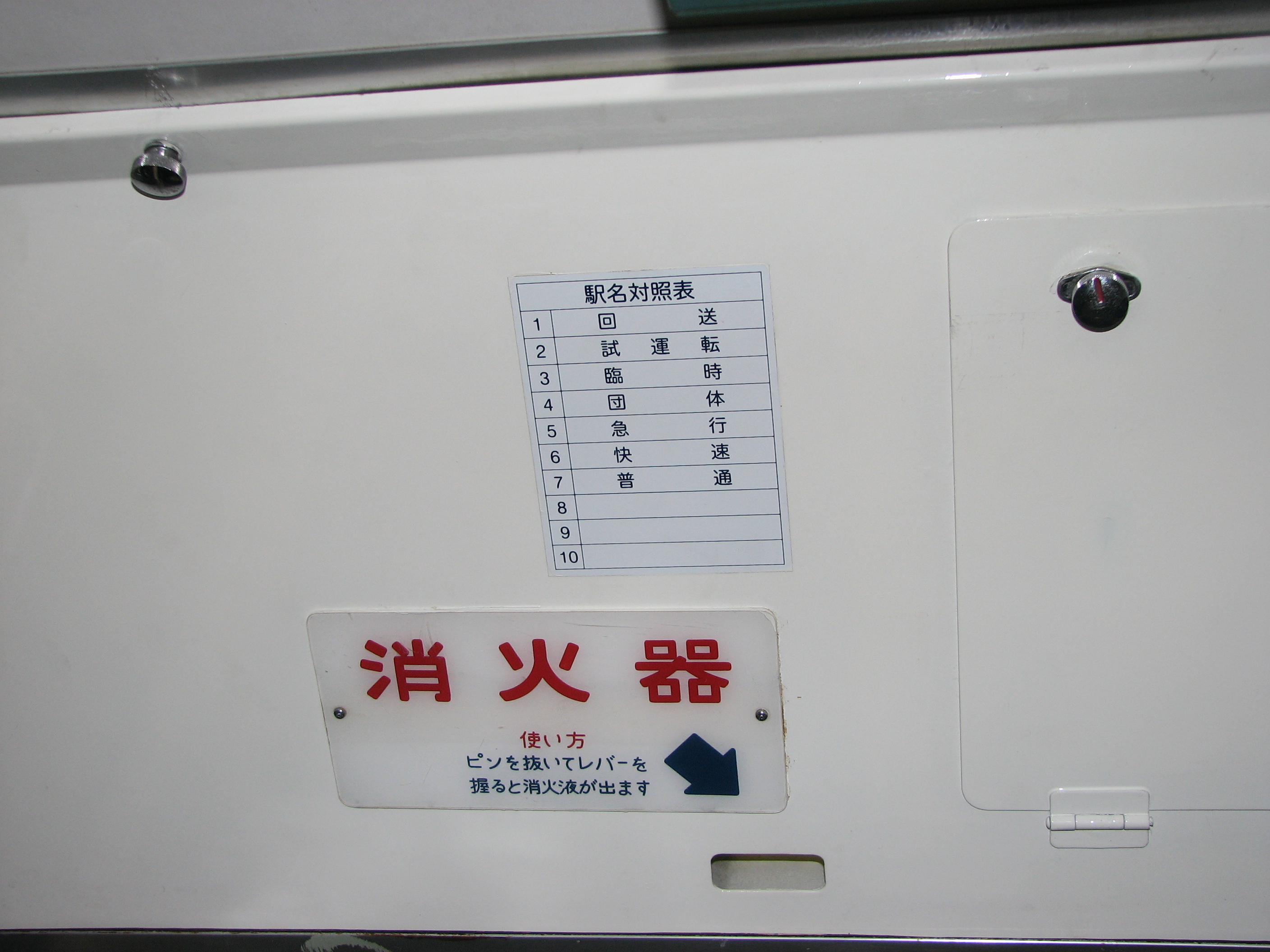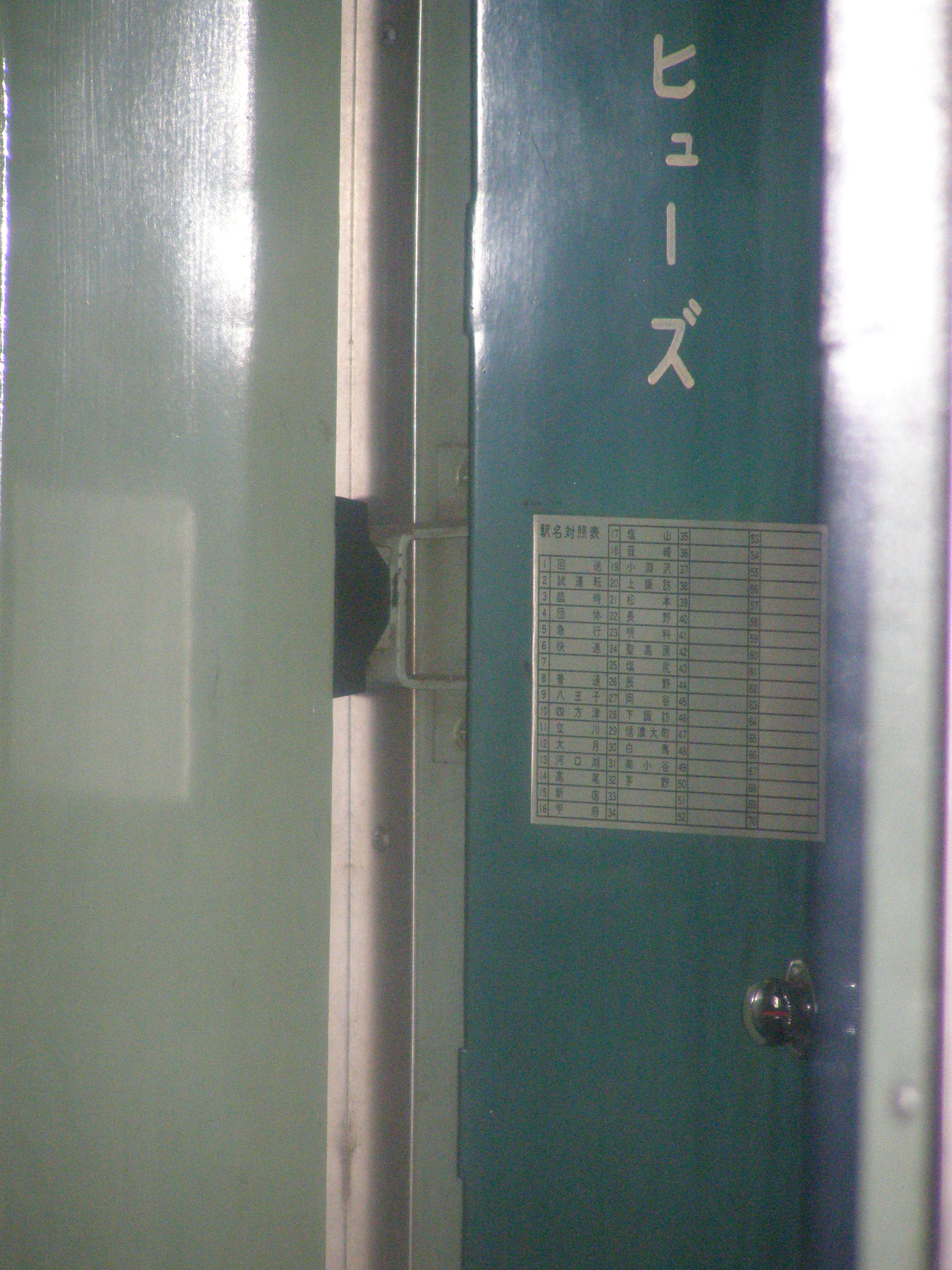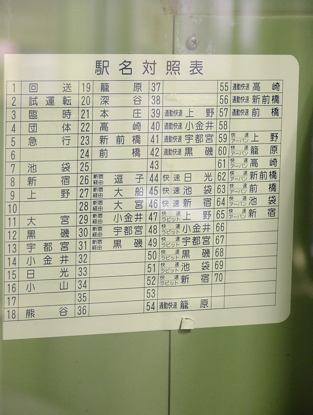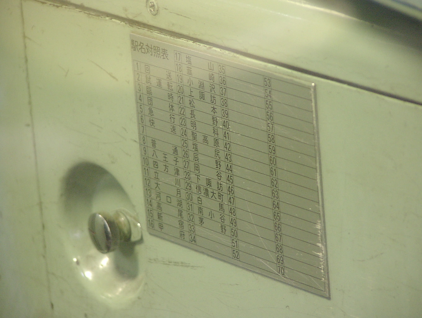 高尾で撮影。設定機の下部、すなわち国府津113系と同位置に貼付。 対照表自体は小ぶりなので、照明の暗さがネックになるものと思われます。