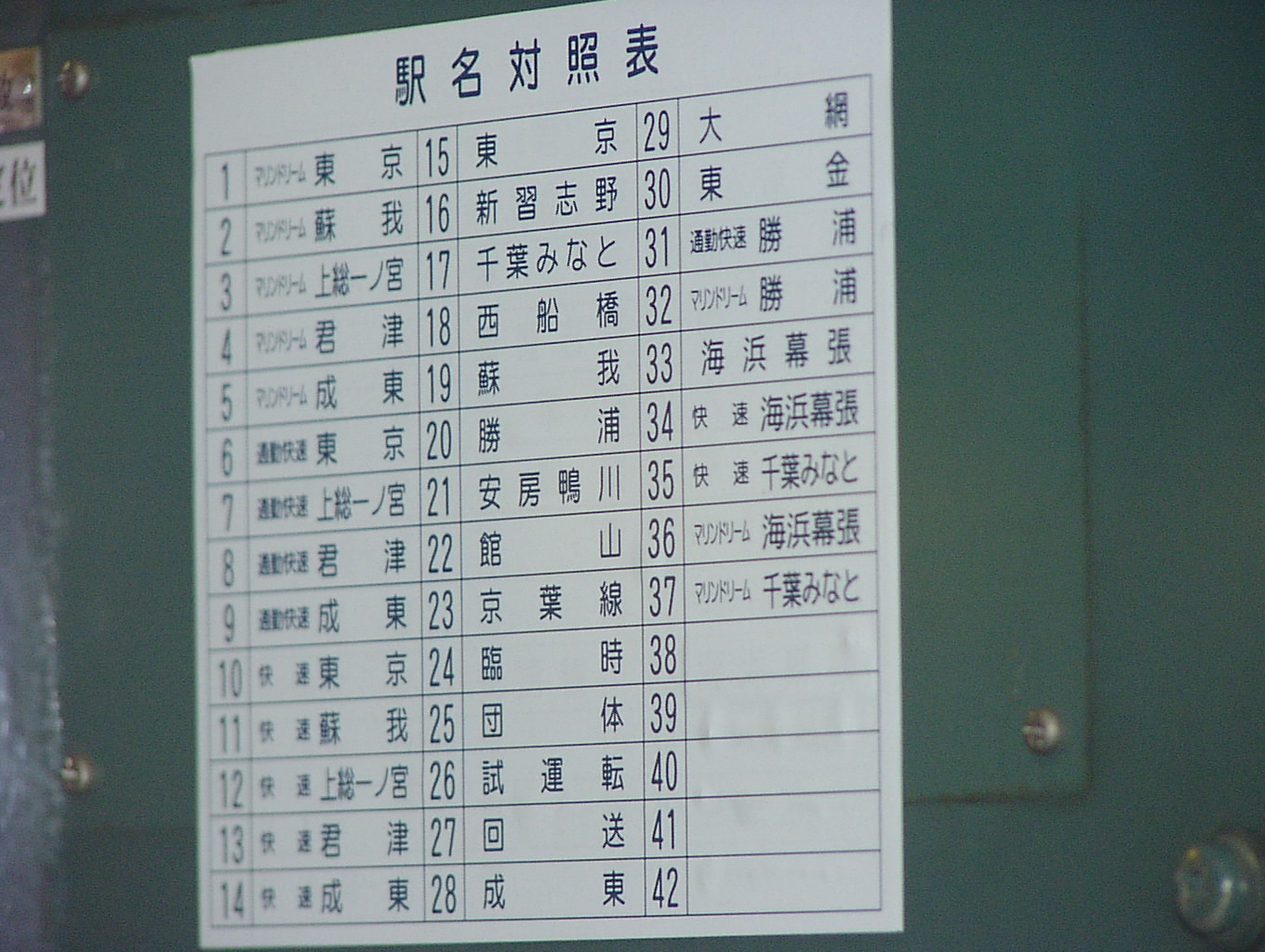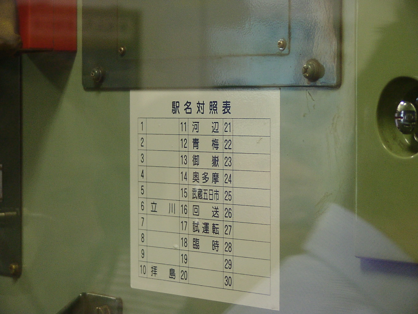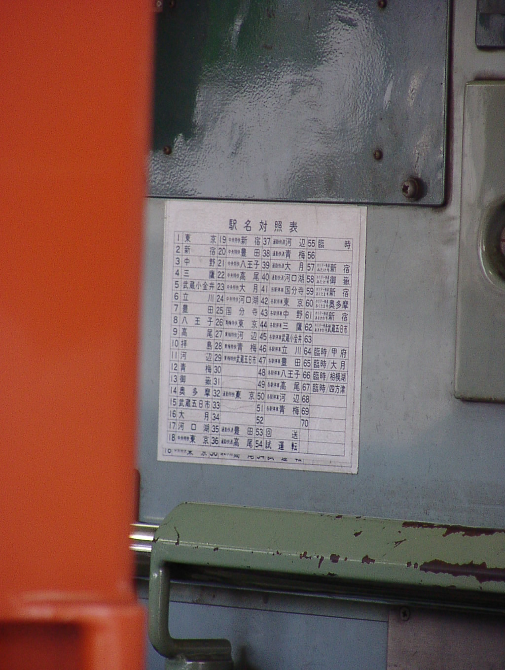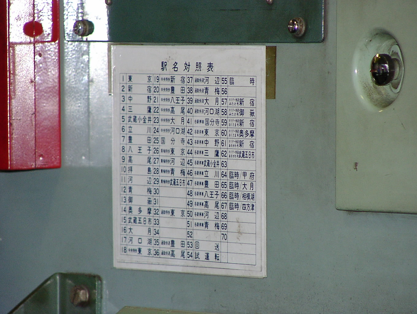 JR東日本の201系は、運転台背面の設定機左側に貼付されていました。