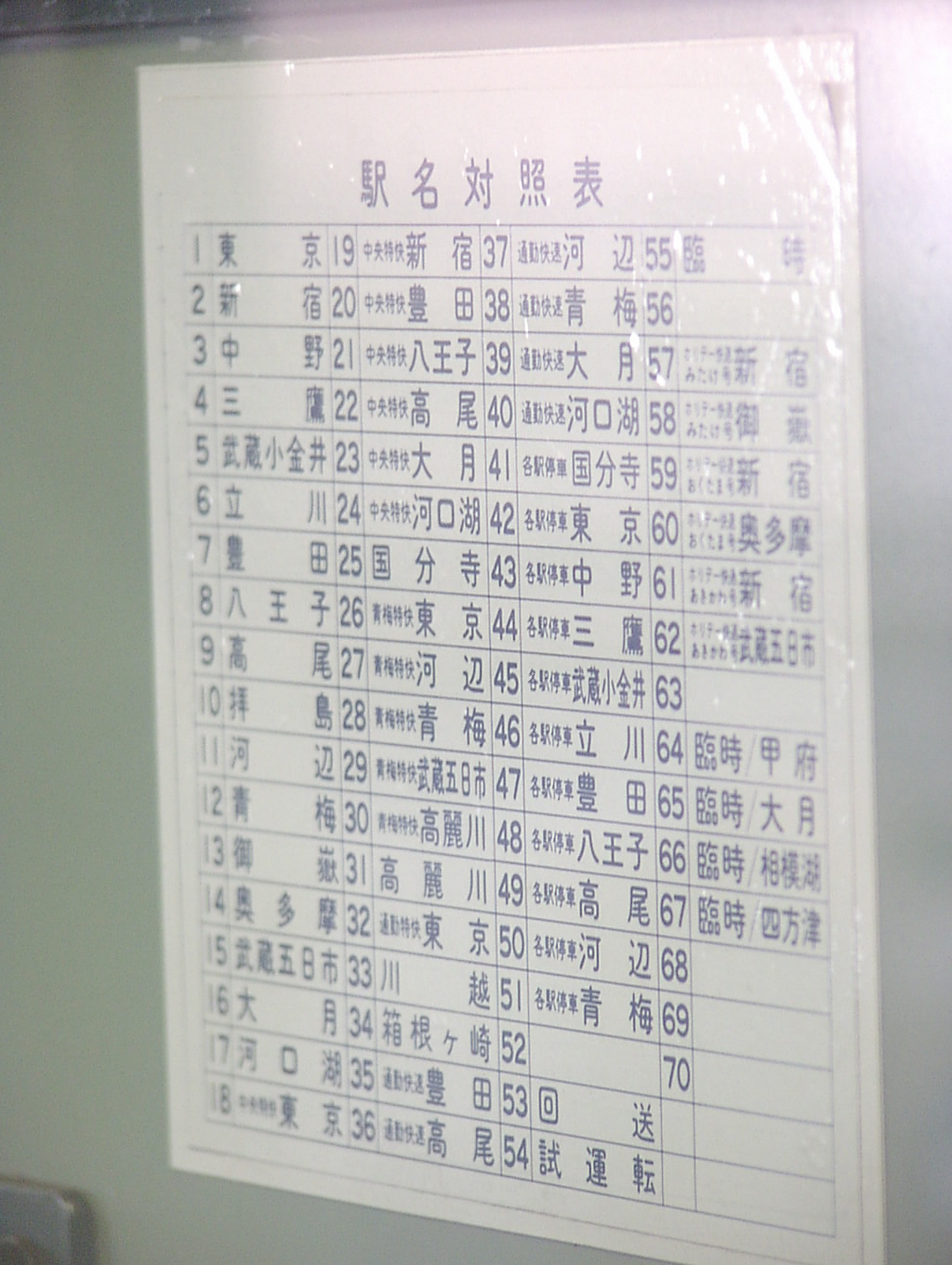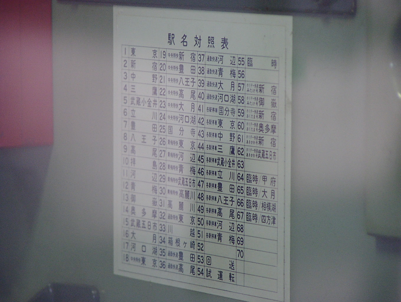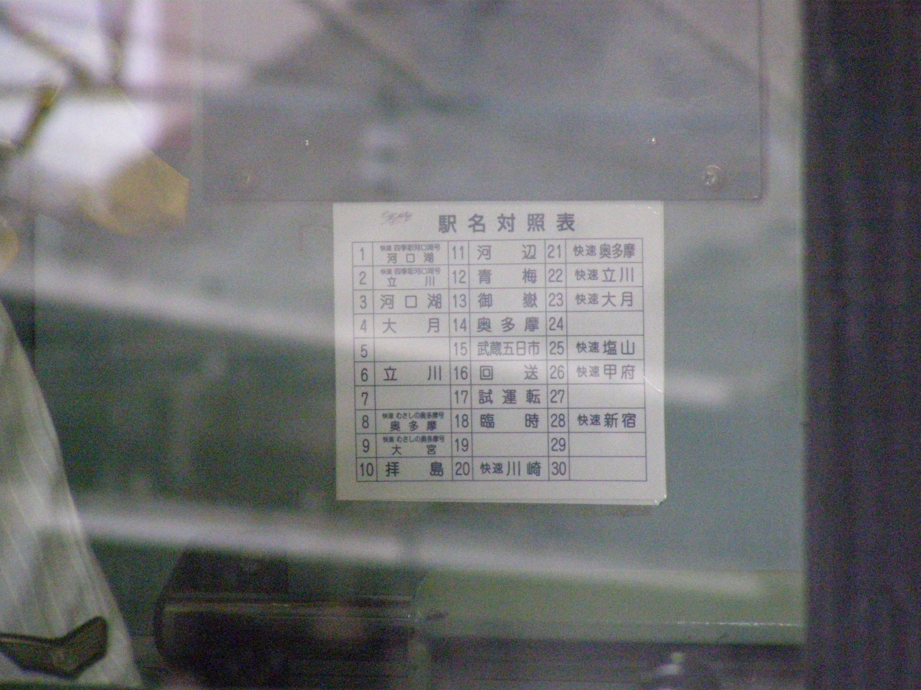 6+4のうち、6両側を4両側の車内からマニュアルフォーカスで撮影。さすがにガラス3枚越しですから ノイズがすごいですが、文字が大きいので逆にはっきり見えています。中央快速線ではここまできれいには行かないでしょう。