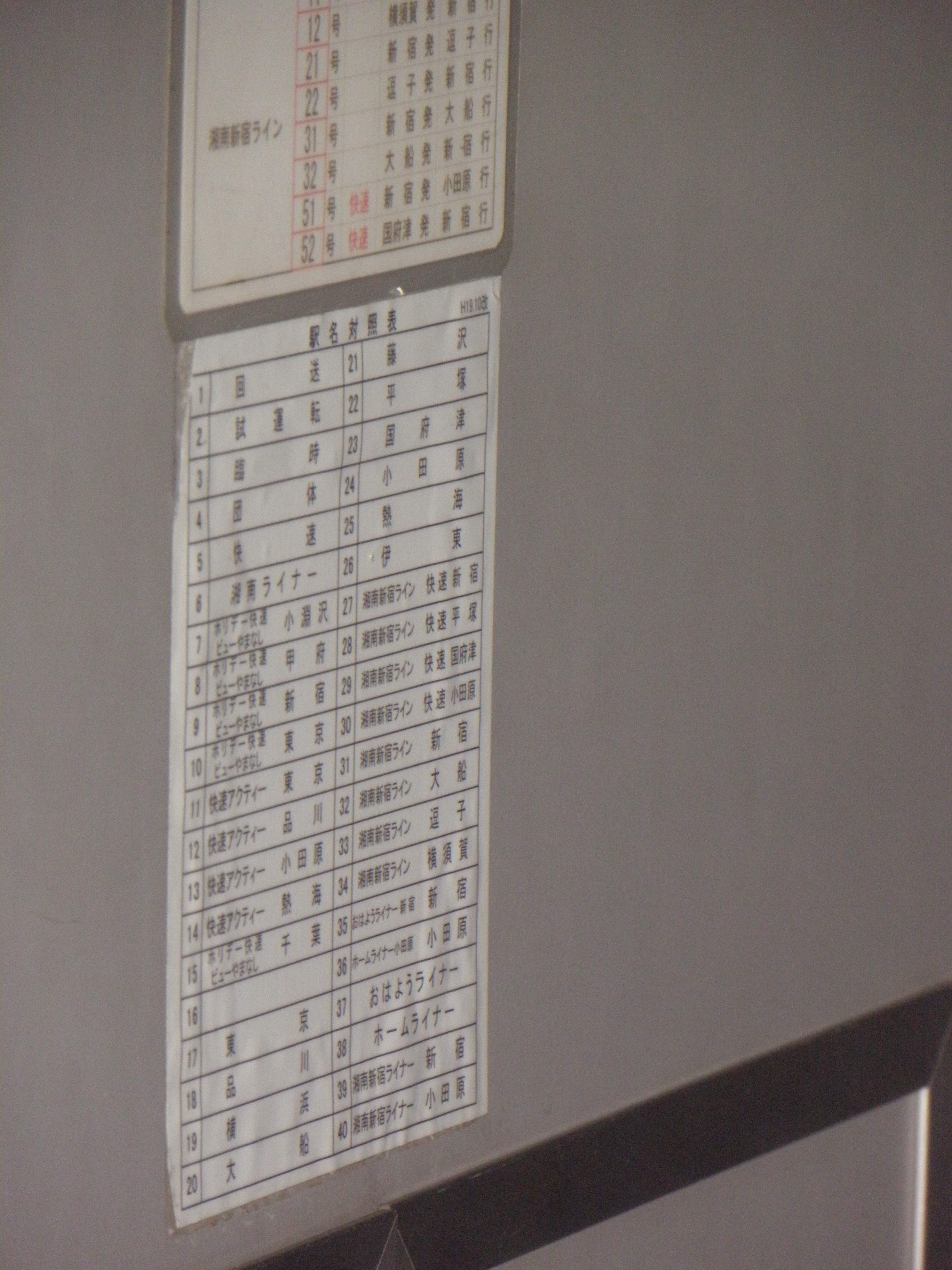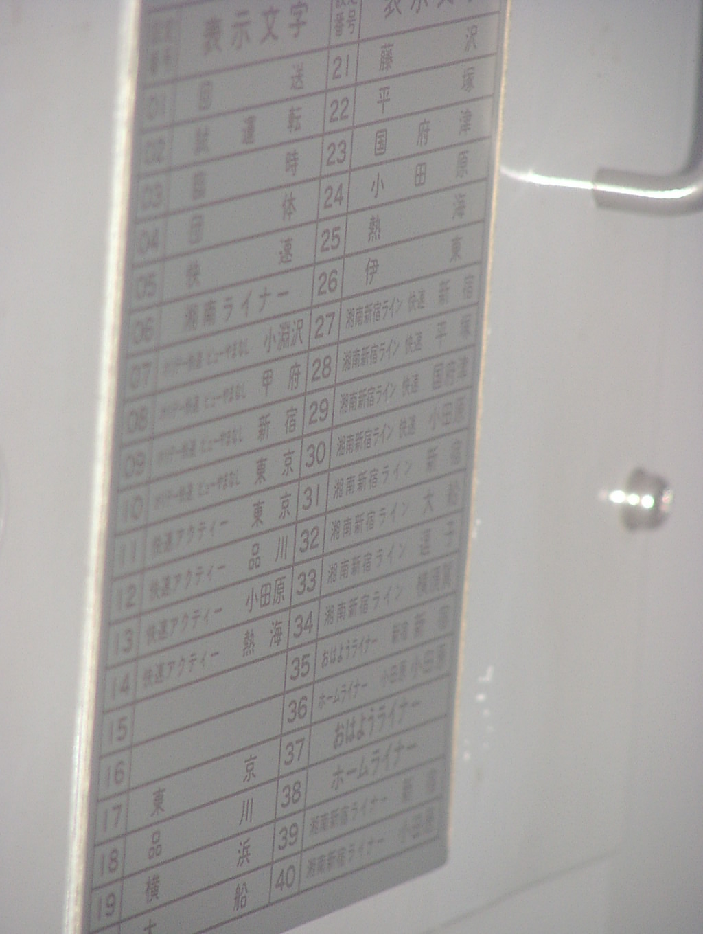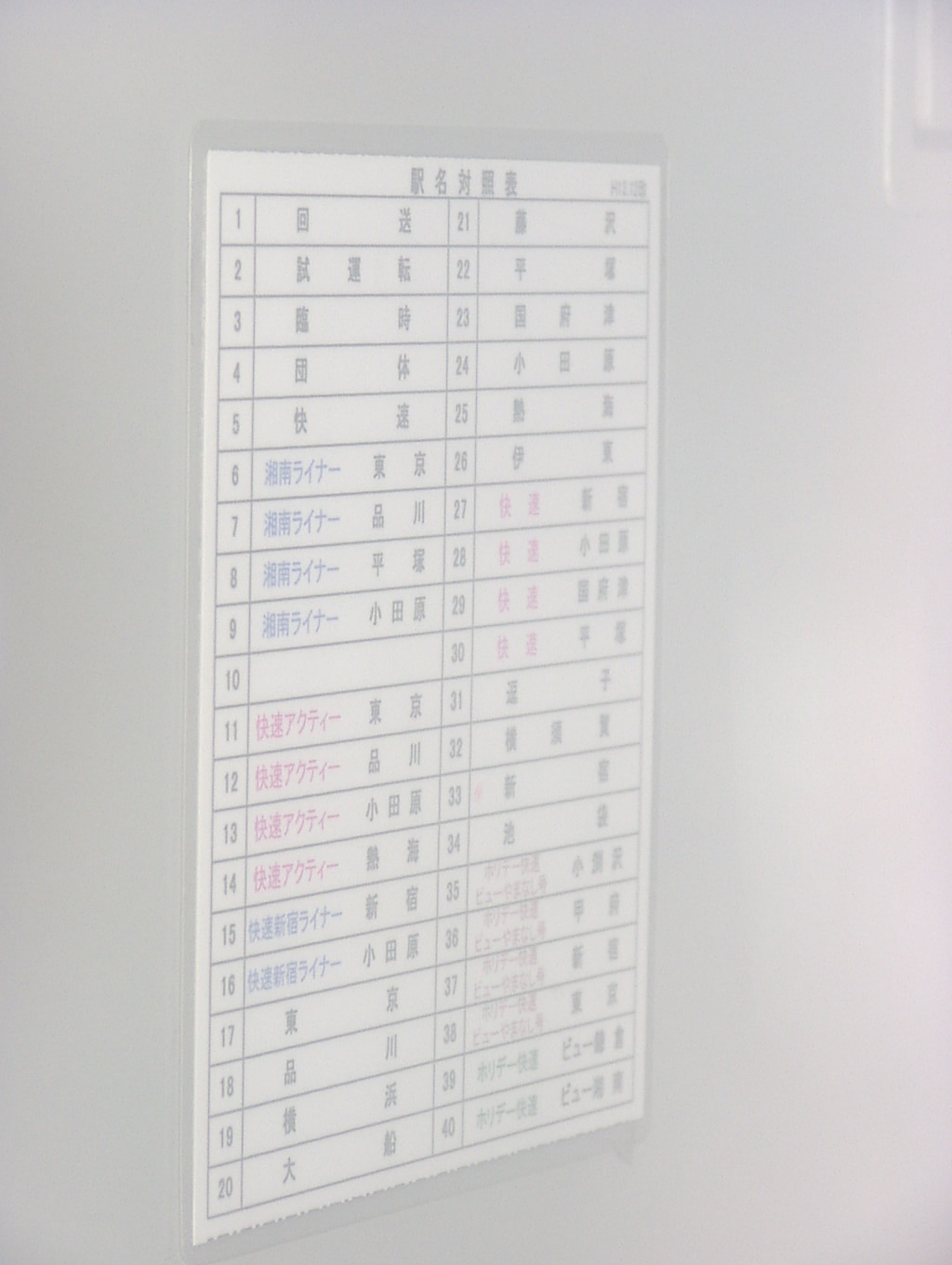JR東日本の215系は、いずれも助士側背面にある設定機上に対照表が貼付されています。