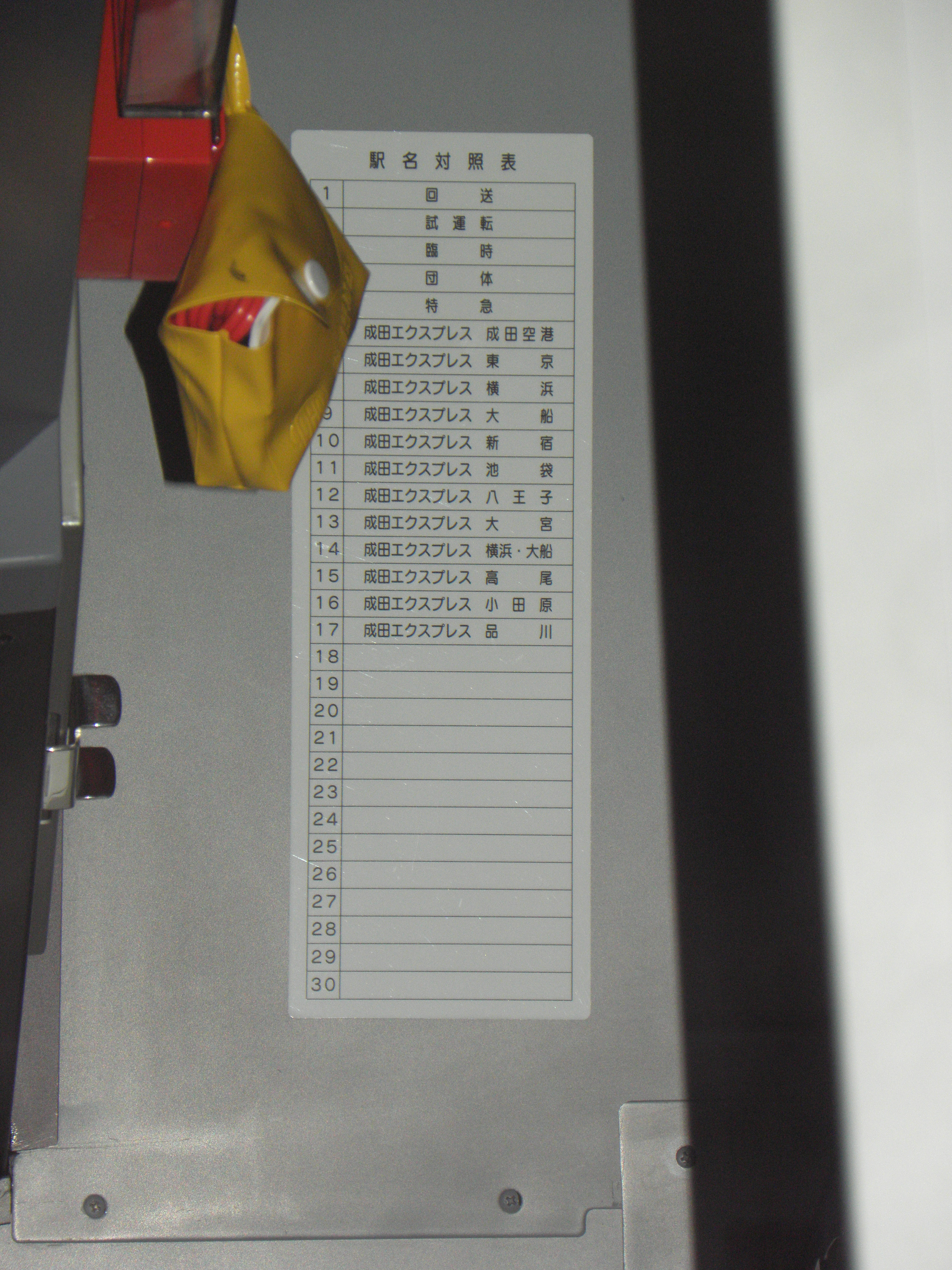 大船駅のためクハ側です。据付後、ドア扱い前です。 当初見込みよりずいぶん幕が増えたなぁという印象。まさか富士急行に入れるなんて誰が予想したでしょうか。