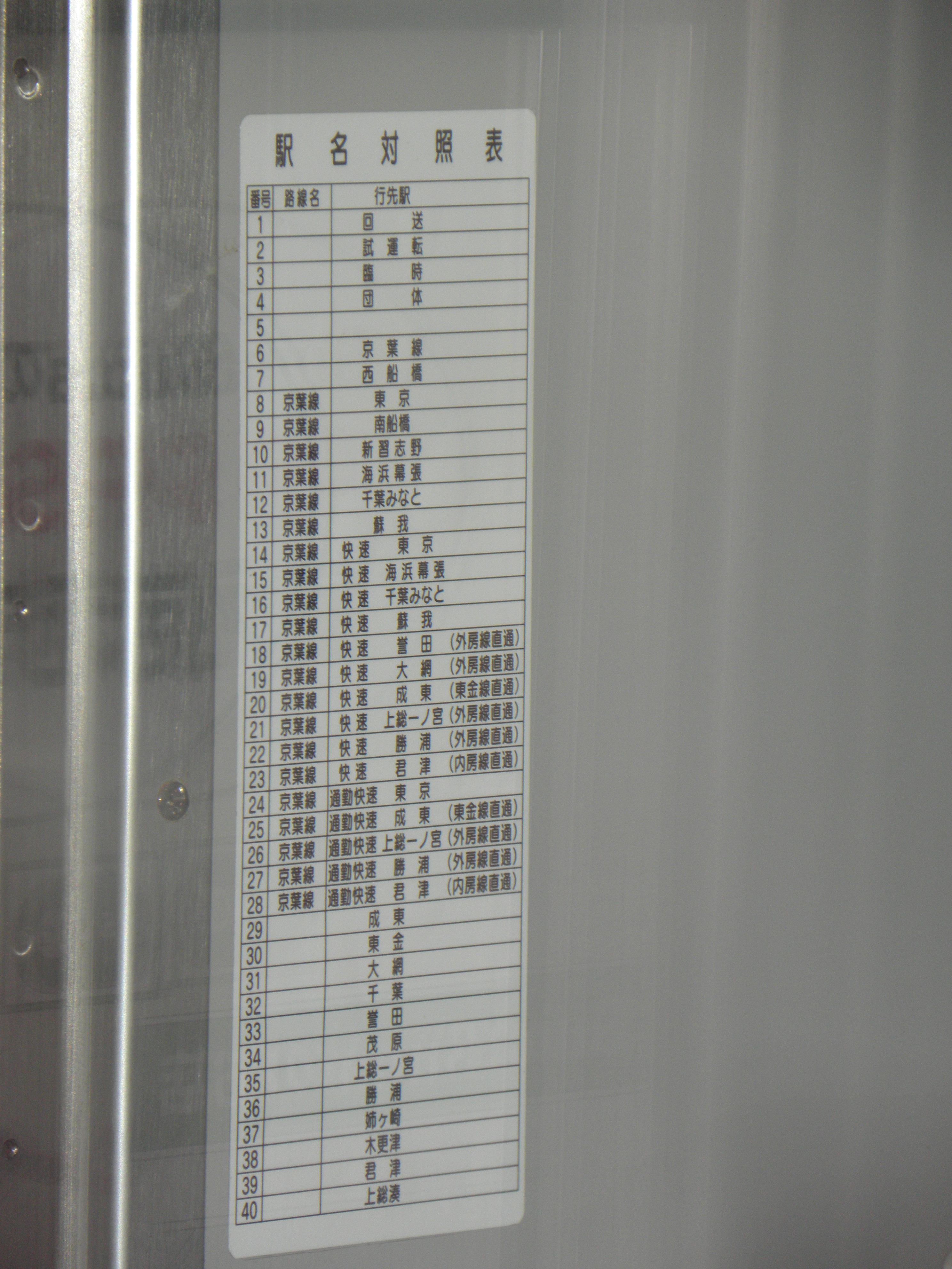 東京駅で撮影。さすがにE231系と同世代のシステムなので、対照表も同等のもの。 当時は最初で最後の撮影機会になるなんて思っていませんでした。