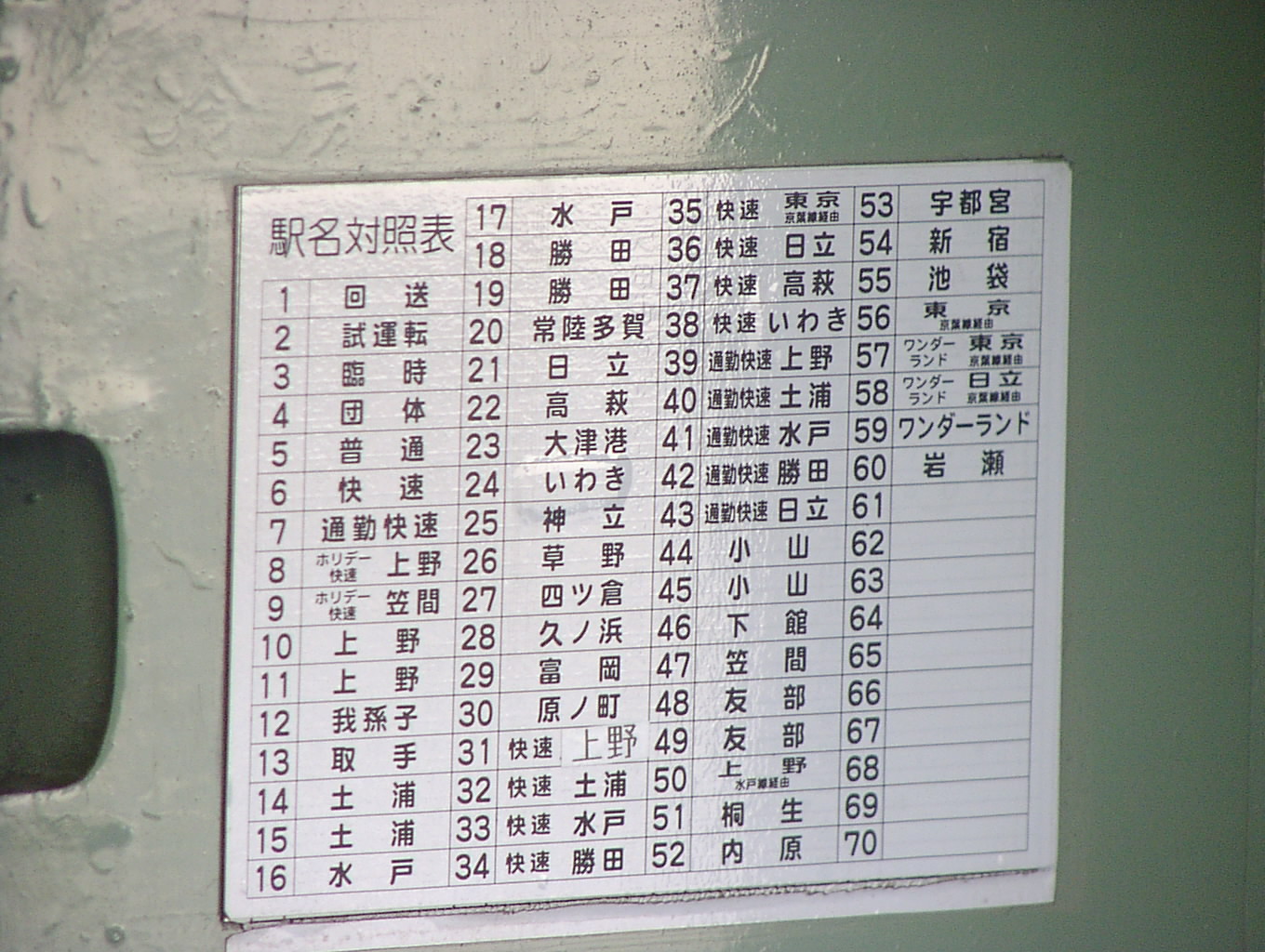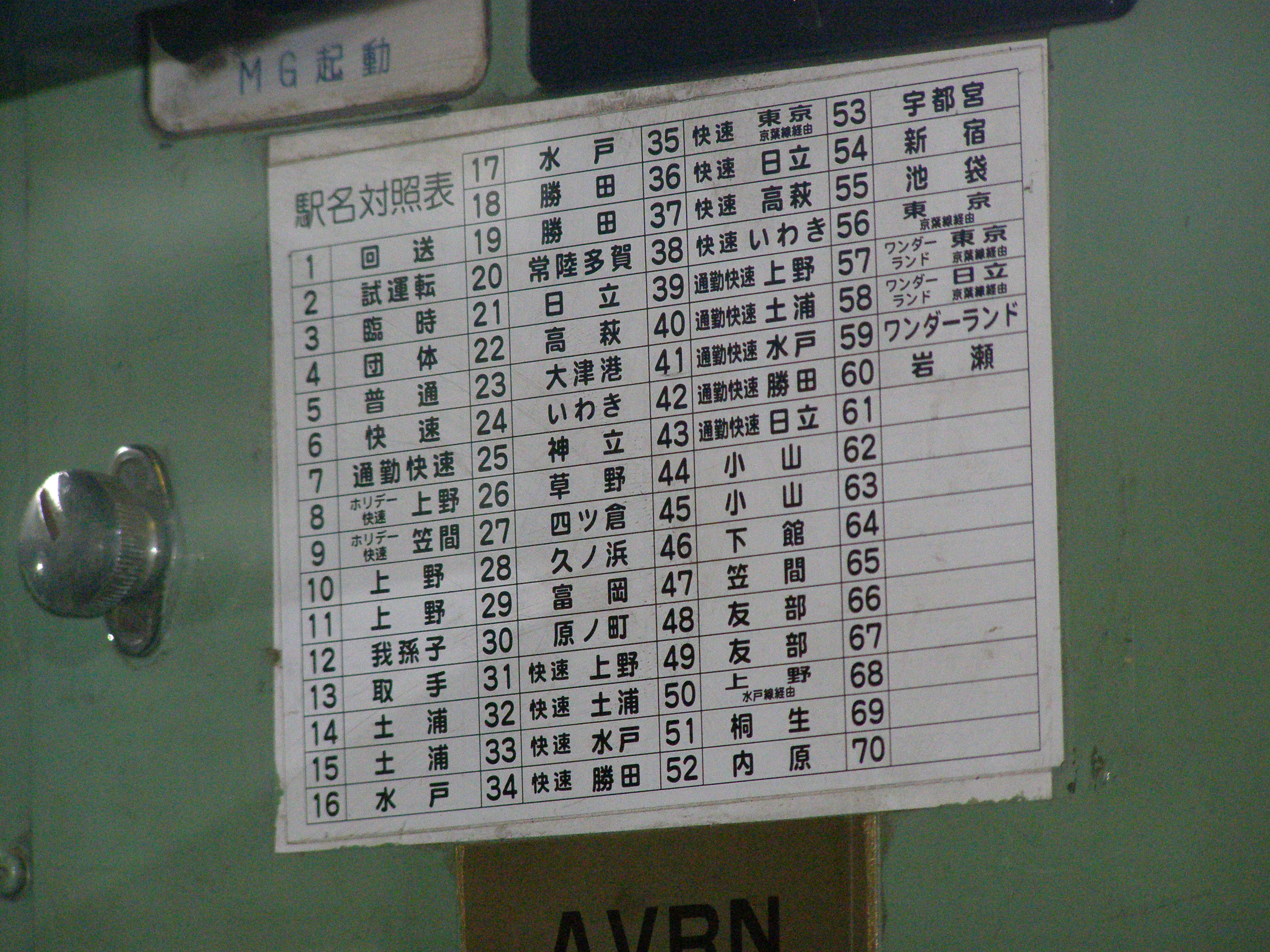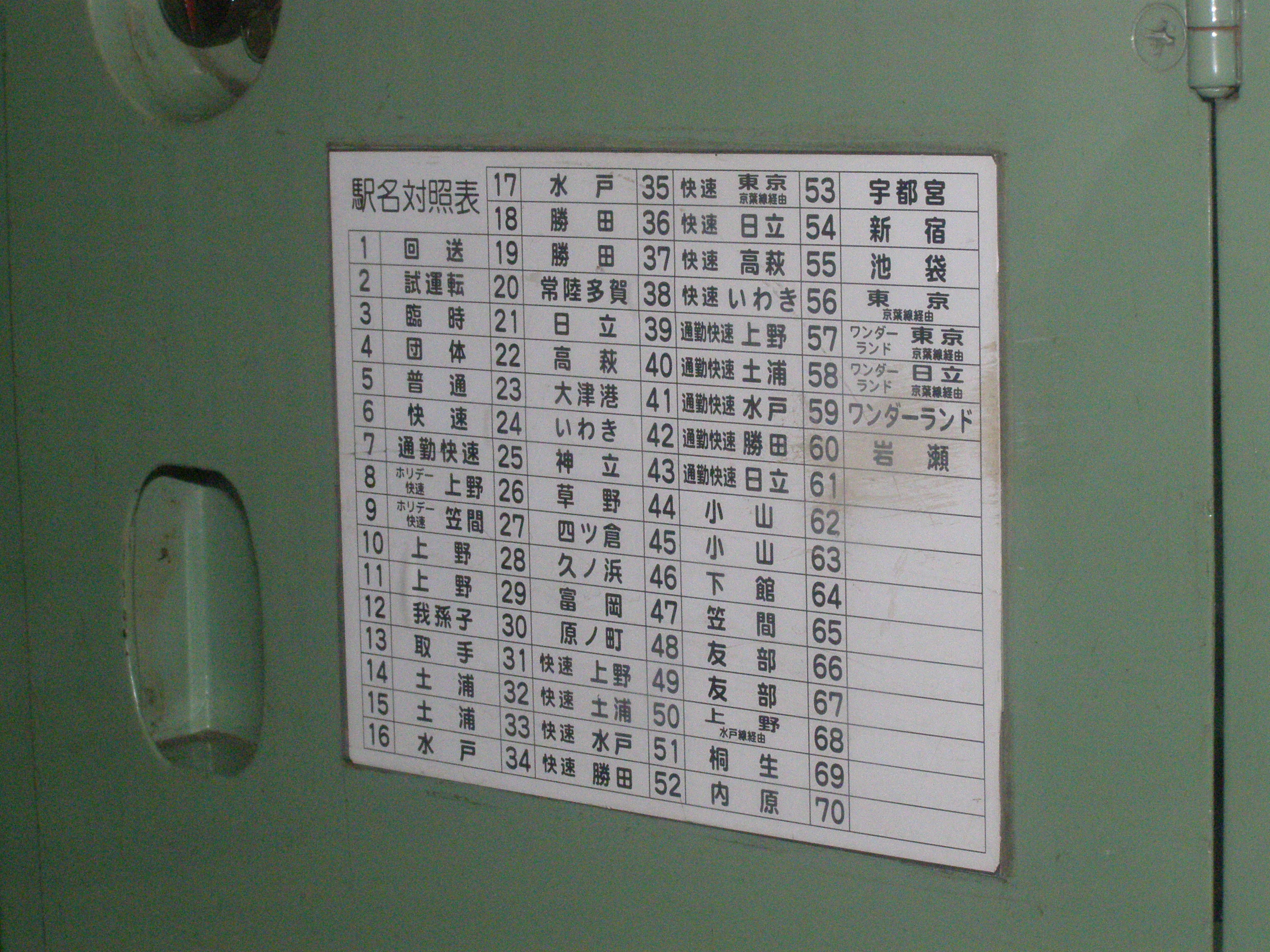 JR東日本の415系は、車両によって貼付位置が異なります。 0番代は113/115系同様運転士側背面設定機の付近,1500番代は211系同様助士側の側壁にある設定機付近です。