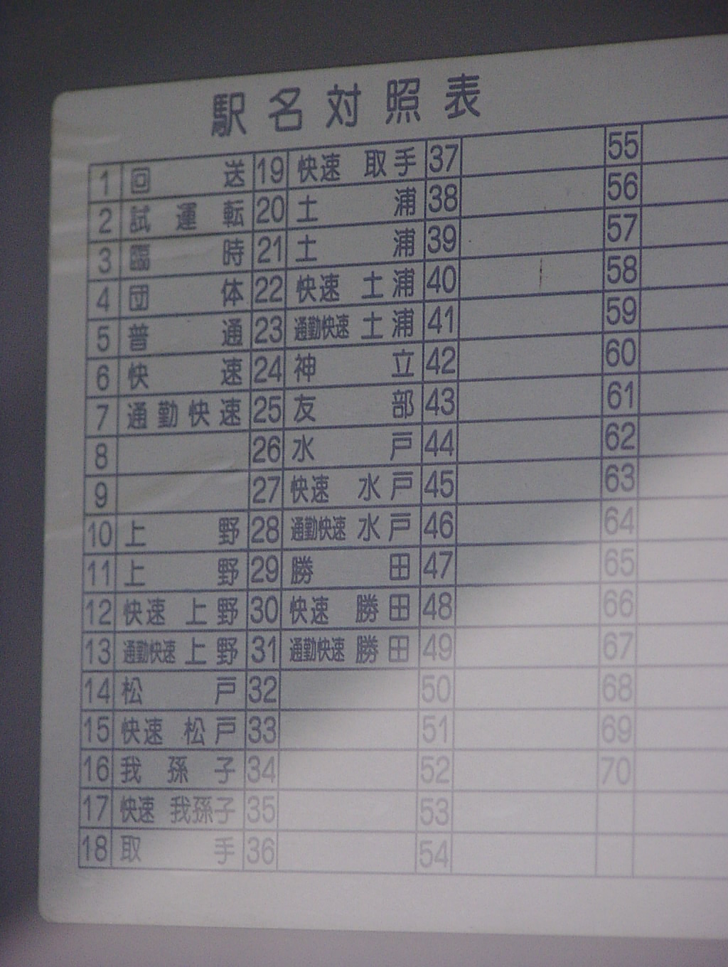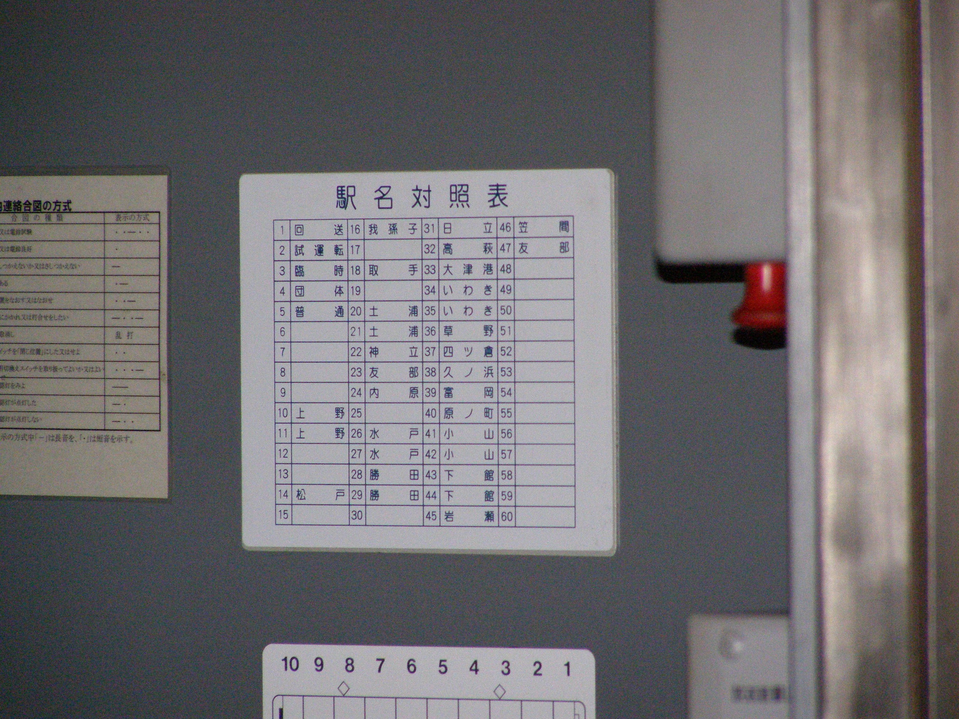 これは前面から撮影。上野専用のときは常時15両でしたが、その任をE531に譲った後は、 基本的に水戸線と友部以北の常磐線ローカルに使用されています。対照表の位置は一緒。 水戸駅が比較的楽かと思います。