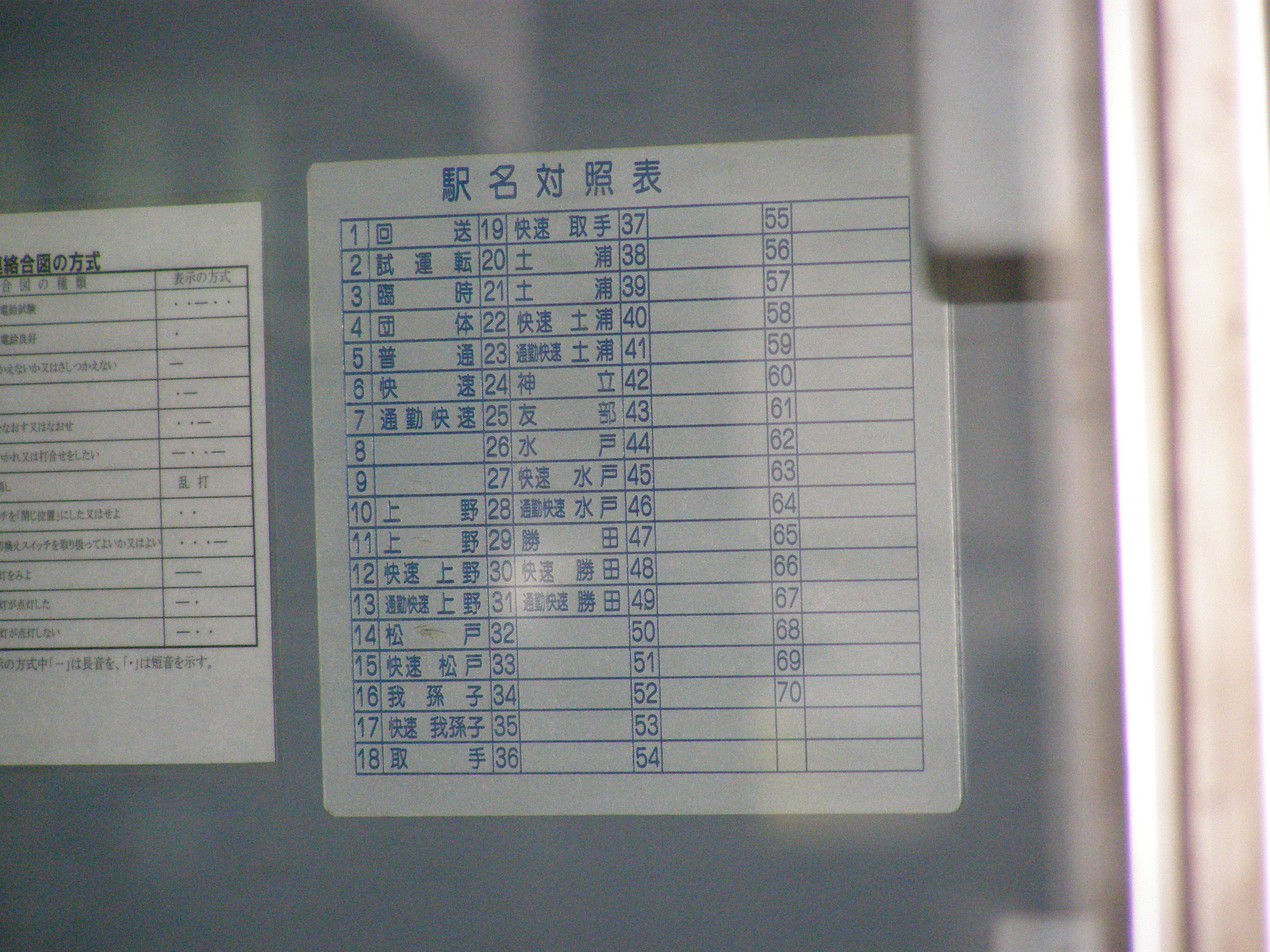 対照表は比較的大きめで、かつ若干内寄りとなっているため、中間運転台の撮影角度は難しいです。 これは乗務員用扉から撮影。 運転士側正面から撮影するほうが素直に撮れそうな気もします。