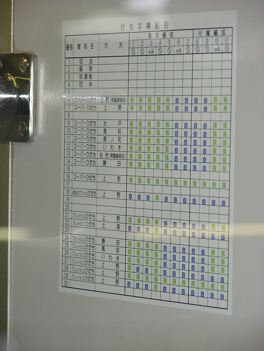 2002/12改正対応以降は幕そのものに。指定/自由の座席区分が取り込まれたため、 貼付位置が若干奥になり、表自体も大型化しているため、撮影は困難に。