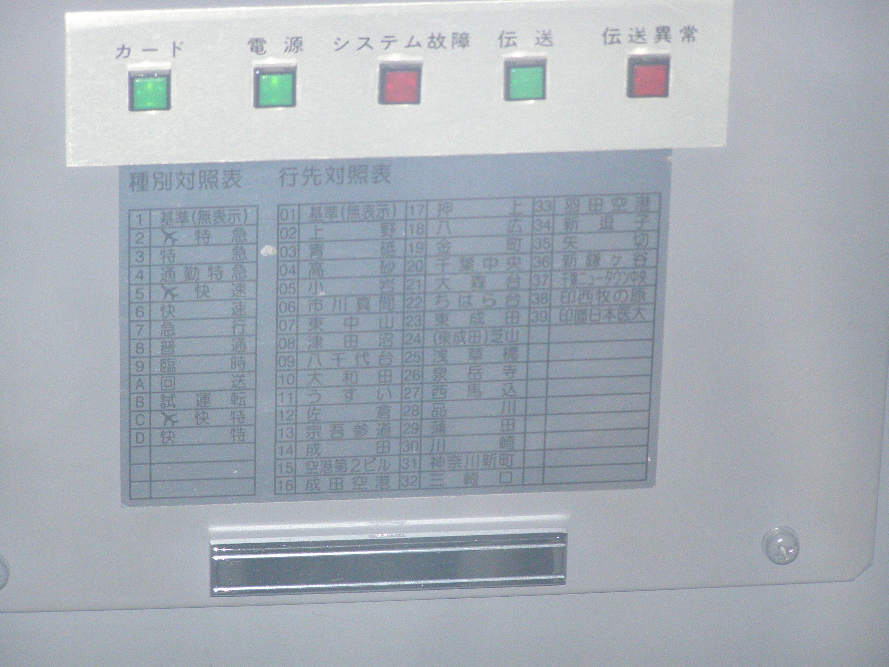 基本LED車で、従来どおりの設定機にて設定するのですが、表示できるデータは運転台の中央部のカード装置 に入っているデータのみの対応となっている模様。 一応京成3000形と同じ仕様なはずです。
