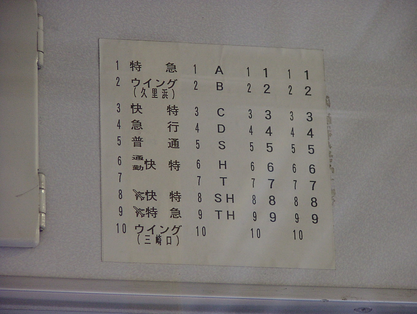 車内で撮影。これはLEDへ交換される前の内容。 LED車の対照表は基本的にありません。新製時からLEDとか、特にステンレス車・・・