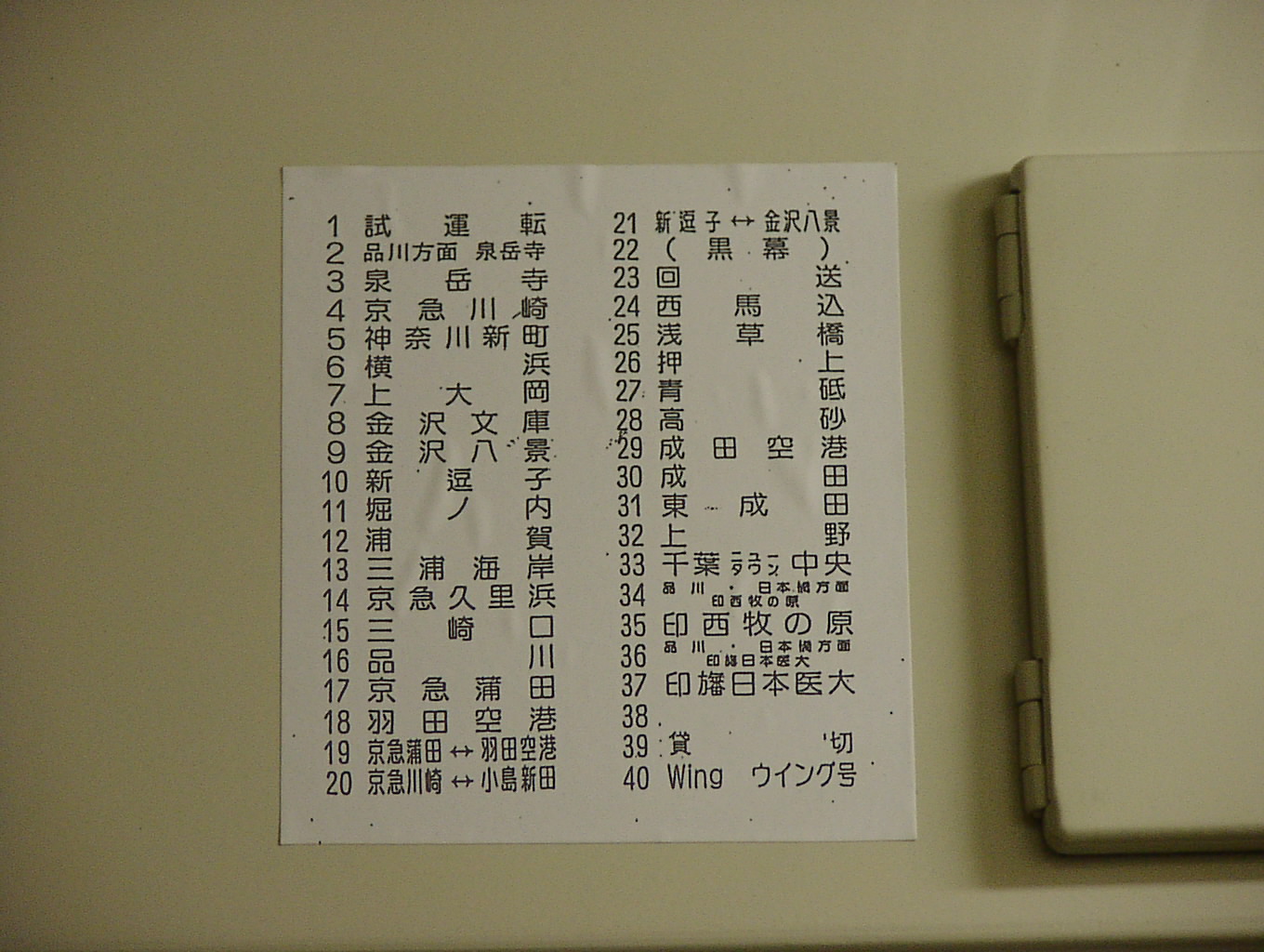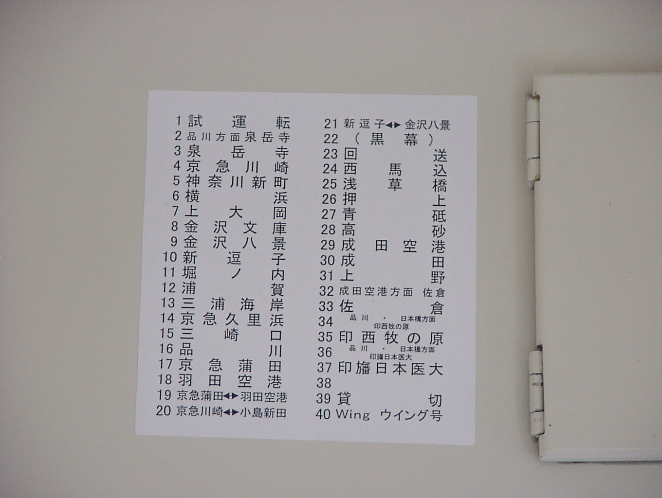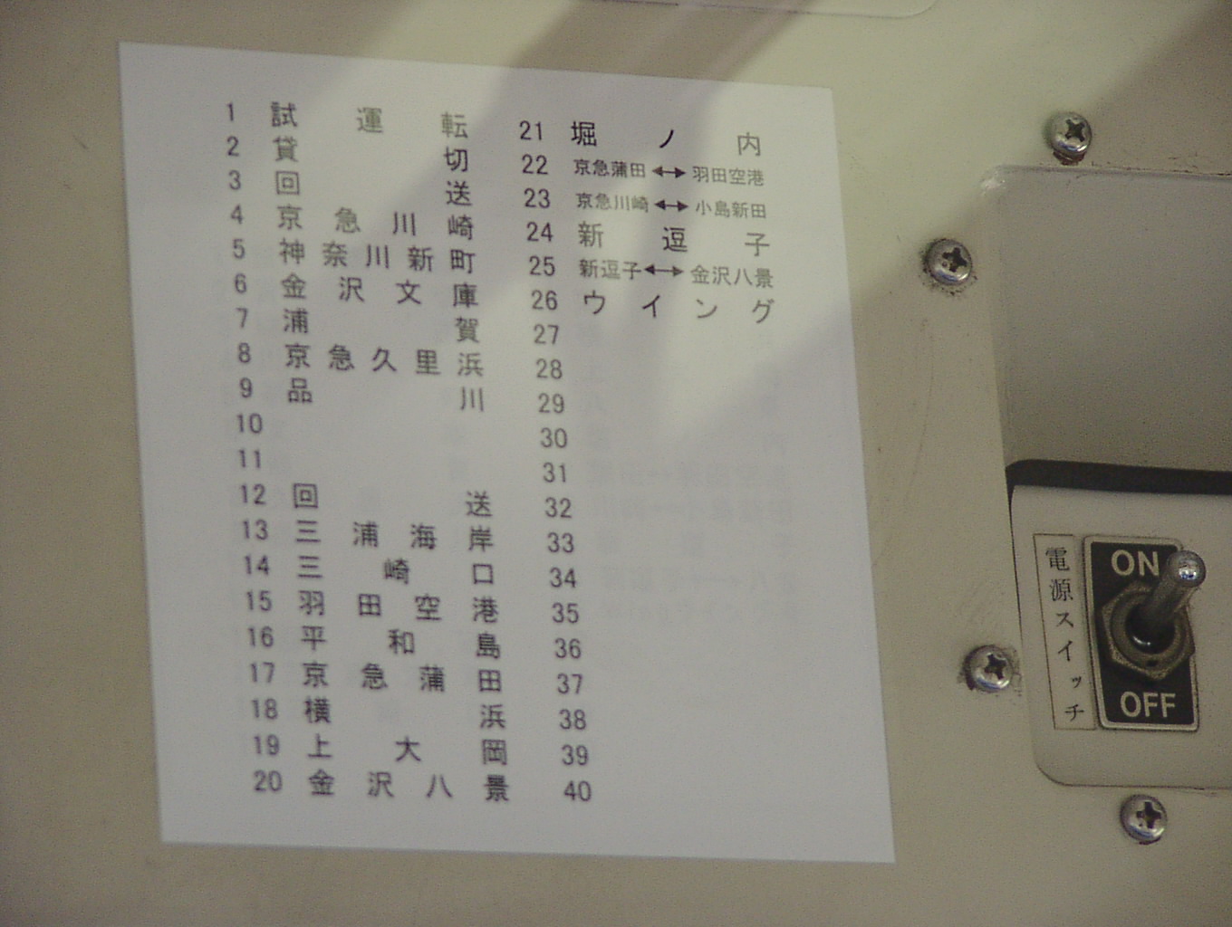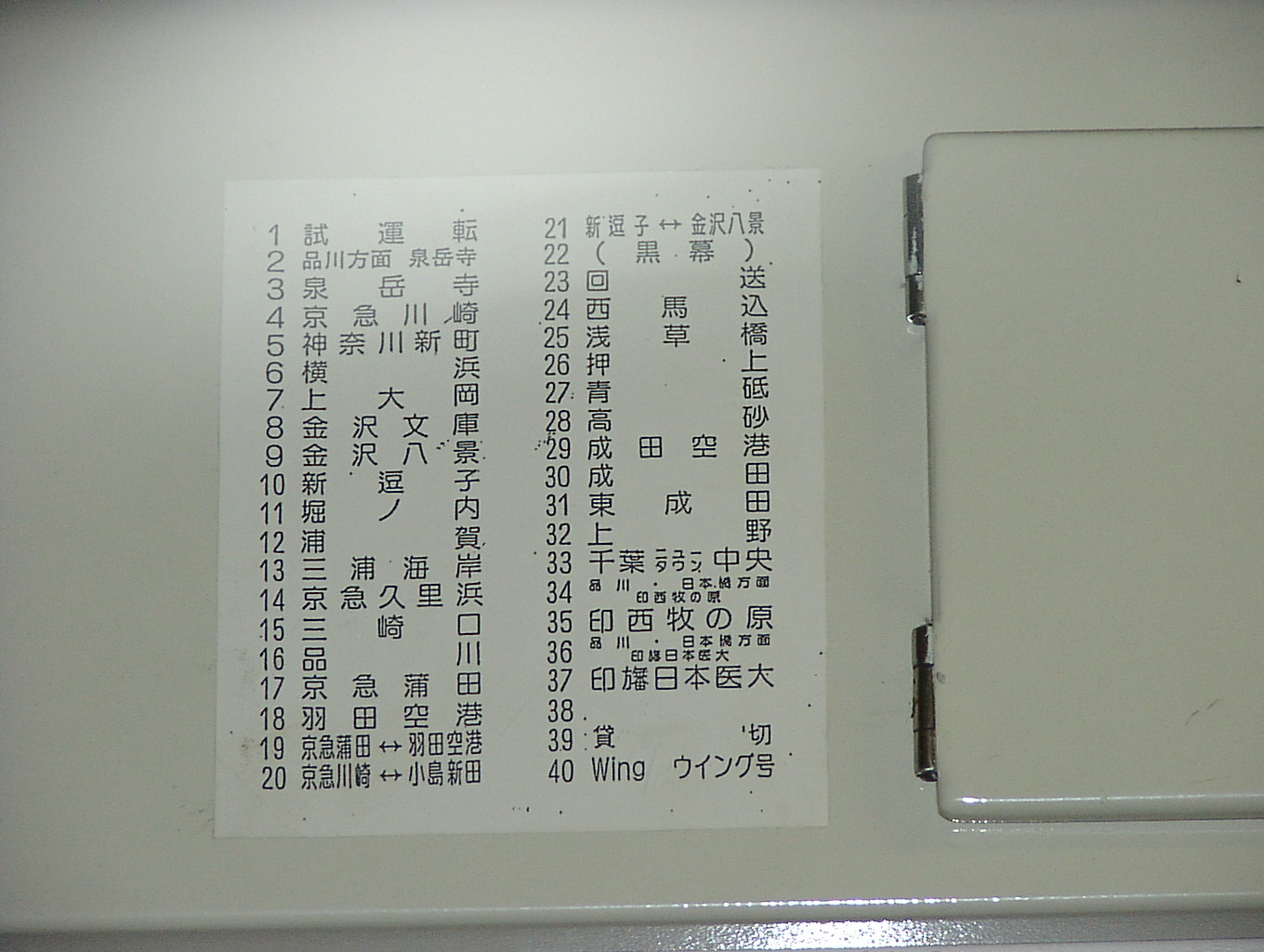 京急は、各々の前面表示機の蓋に貼付されています。 ただし前面がLEDの編成には対照表が蓋の中にあるものと考えられます。