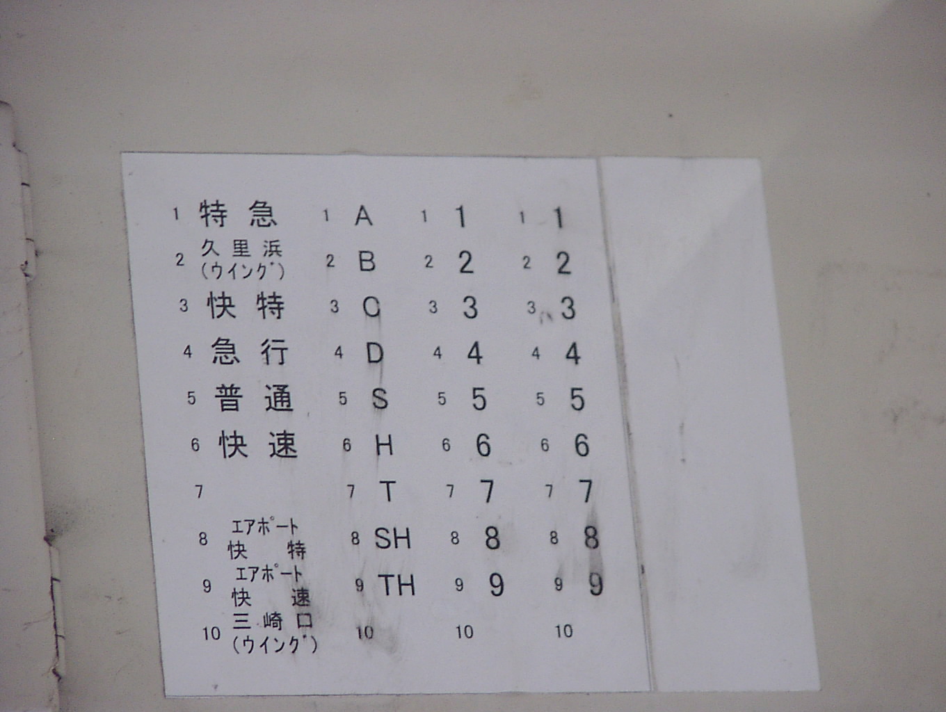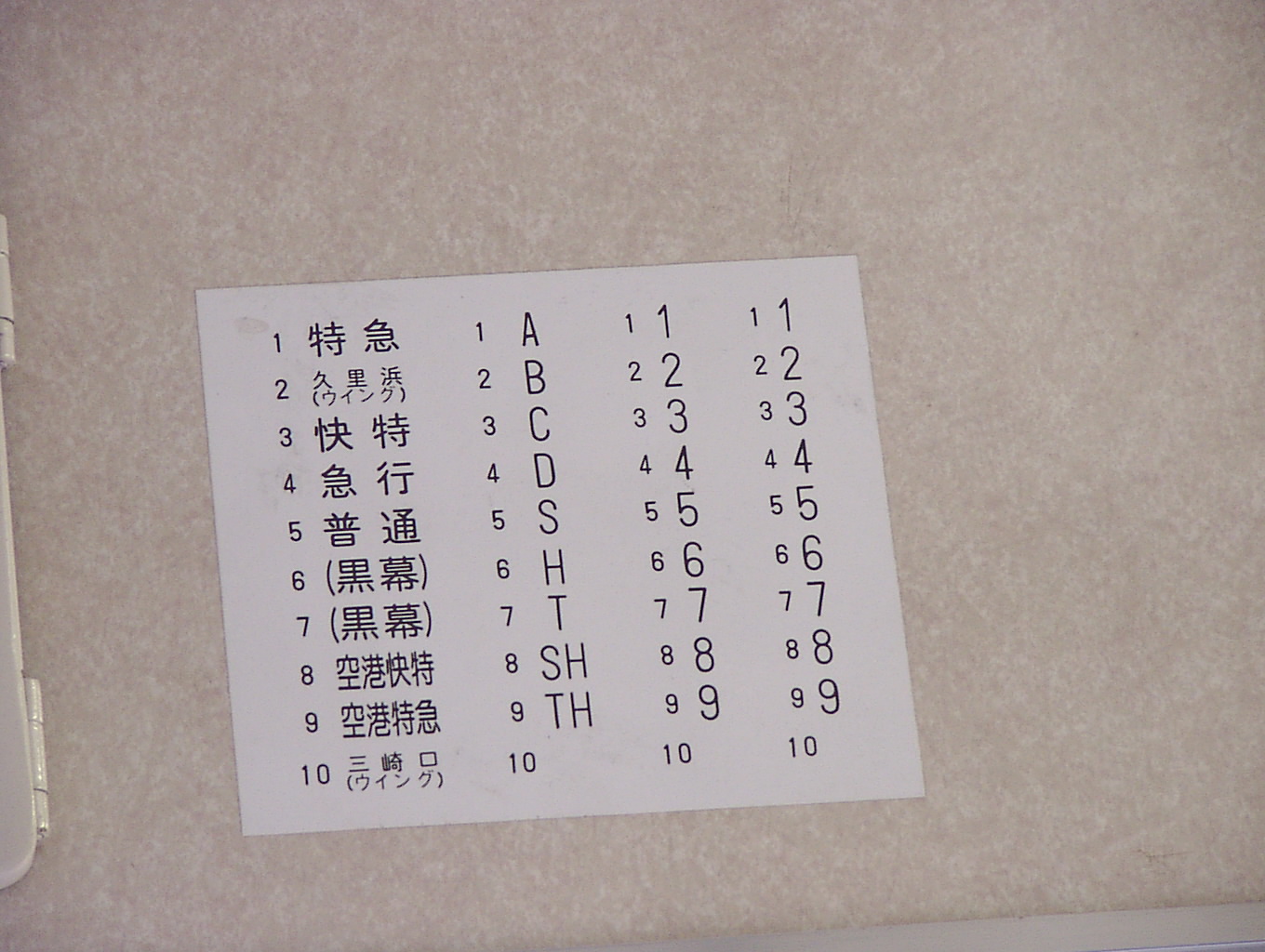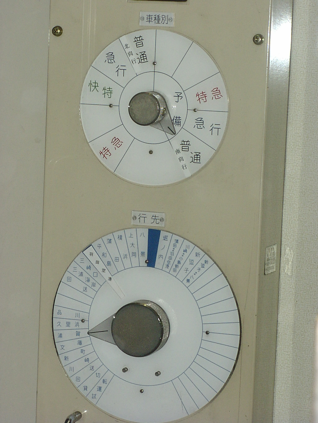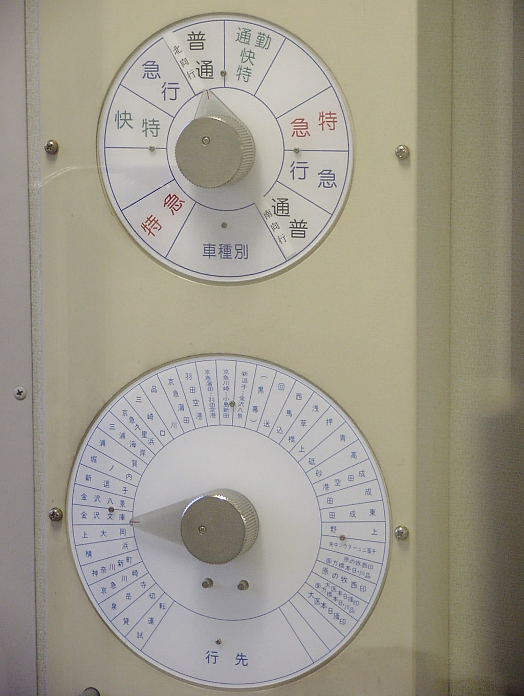 京急は、各々の前面表示機の蓋に貼付されています。 ただし前面がLEDの編成には対照表が蓋の中にあるものと考えられます。