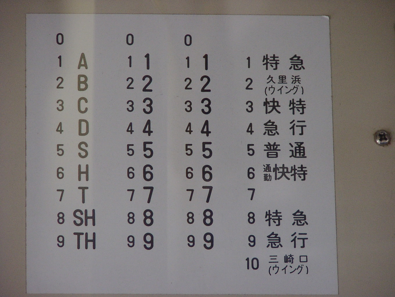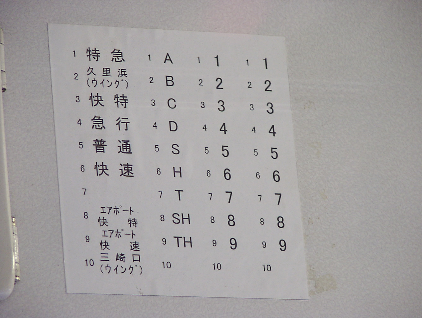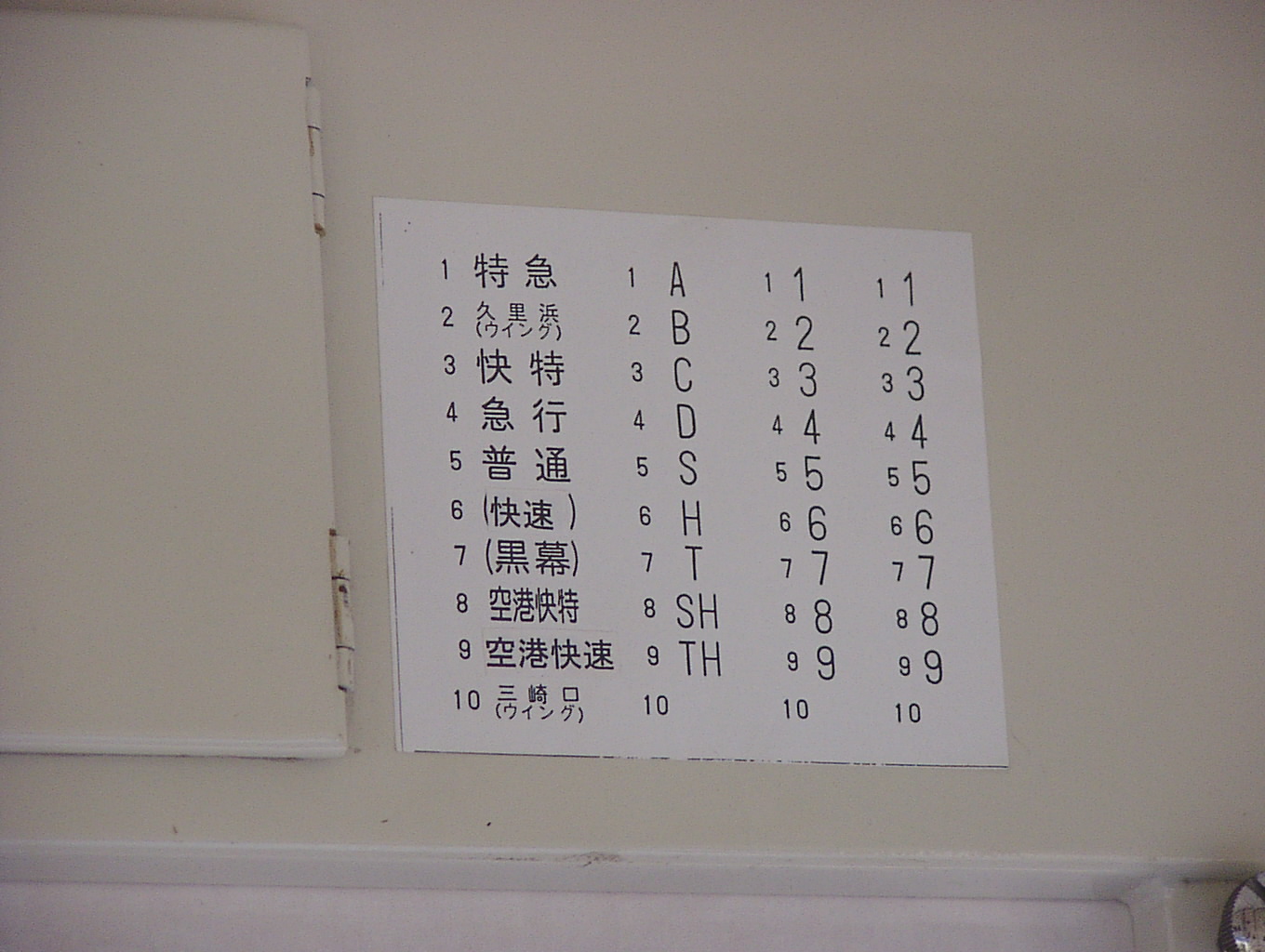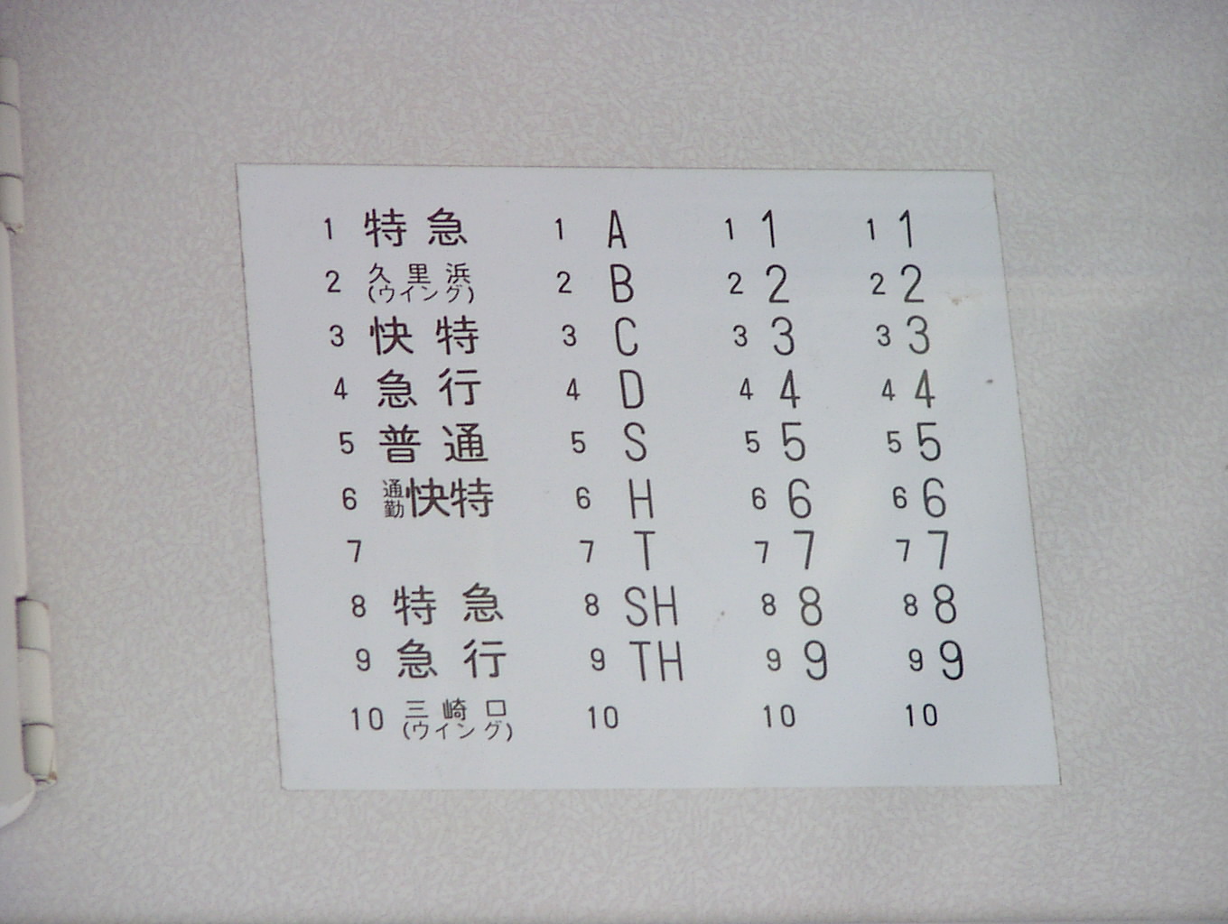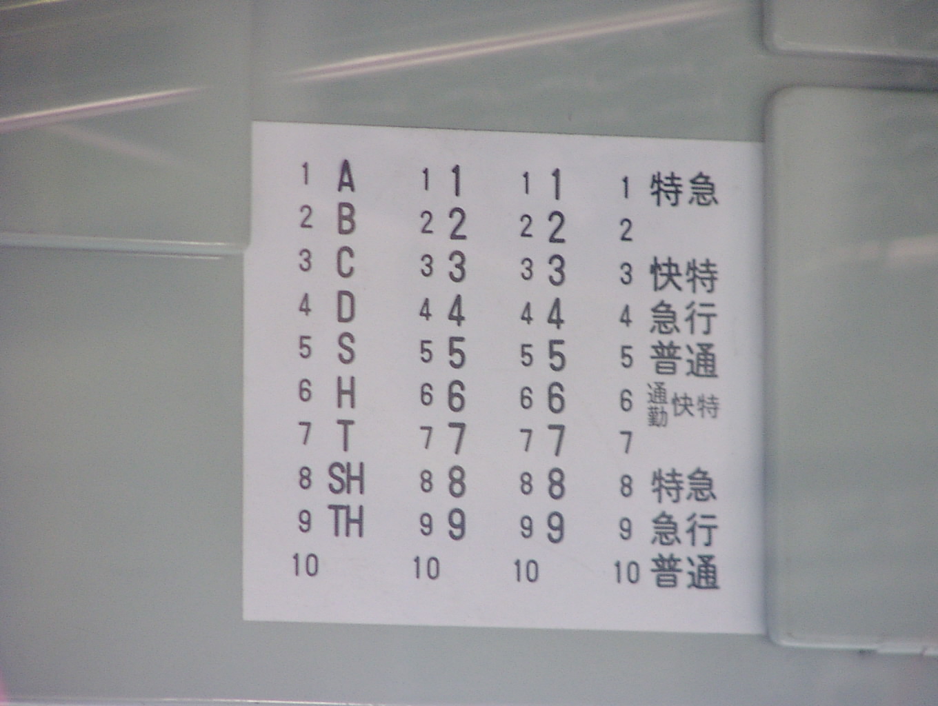 京急は、各々の前面表示機の蓋に貼付されています。 ただし前面がLEDの編成には対照表が蓋の中にあるものと考えられます。