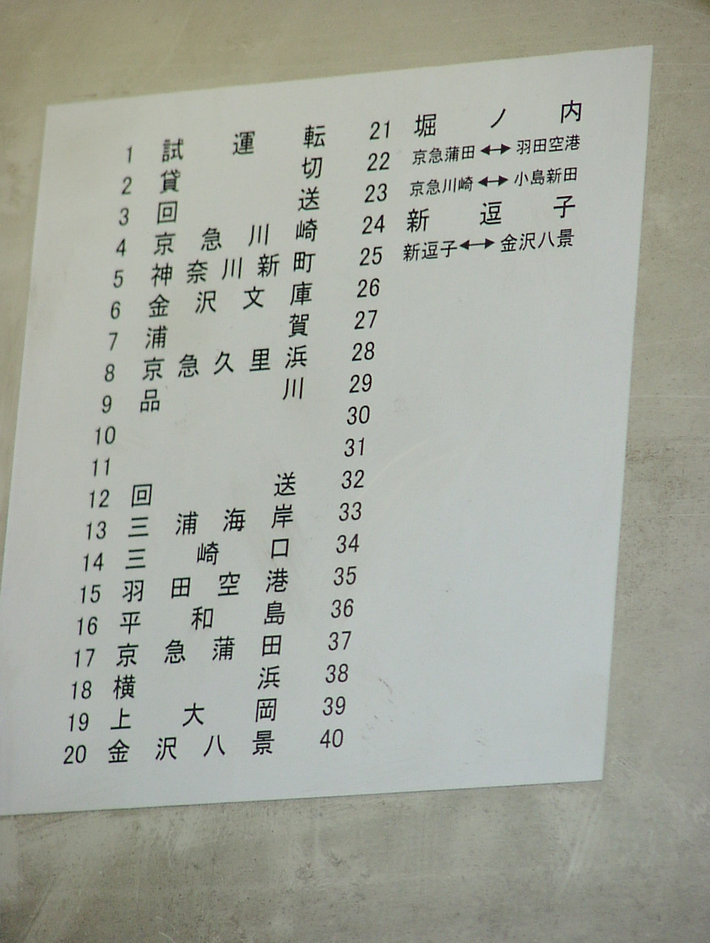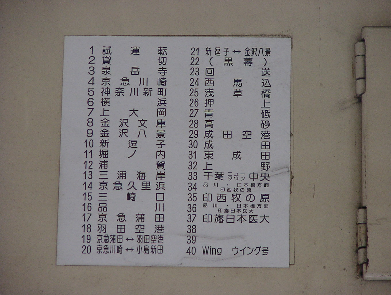 長いこと京急の標準だった新逗子開業時以来の幕で、旧白幕の最終仕様と同じ。 これが多分現存最古の内容ですが、そろそろこの幕を装備する車はそろそろ全滅か?