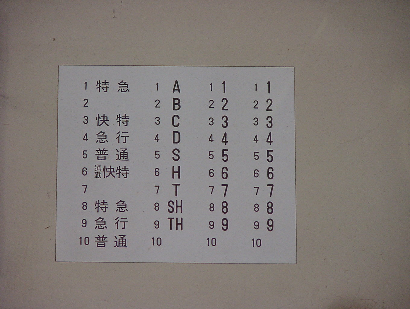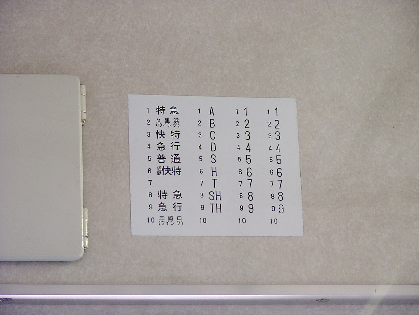 1500形は北側助士側側壁のダイヤル式装置で設定ていましたが、全車更新が完了で消滅。対照表は残存。